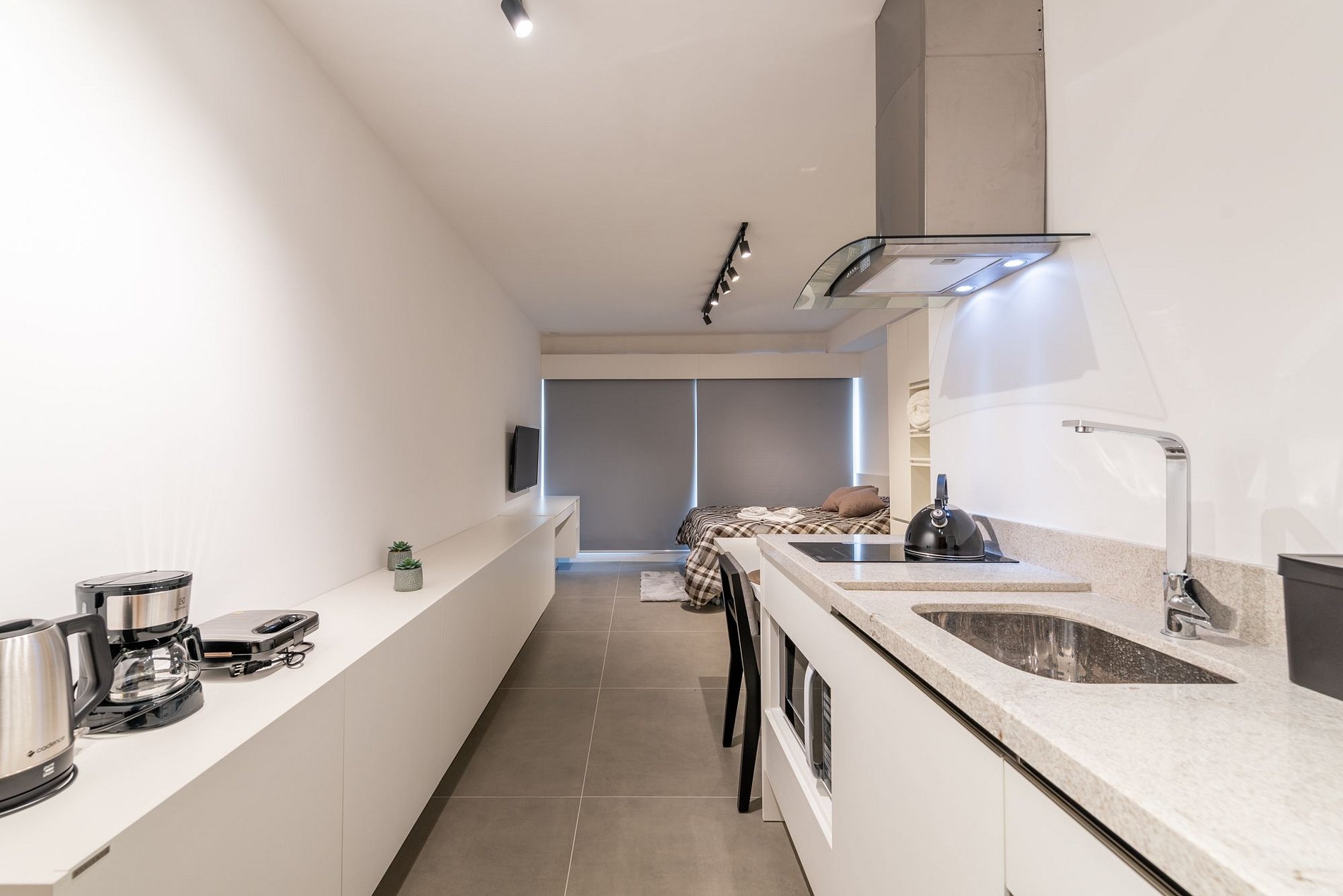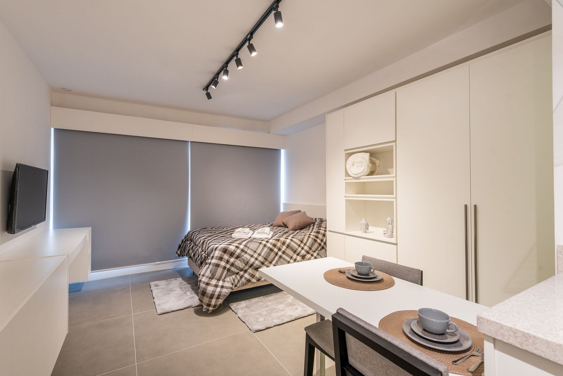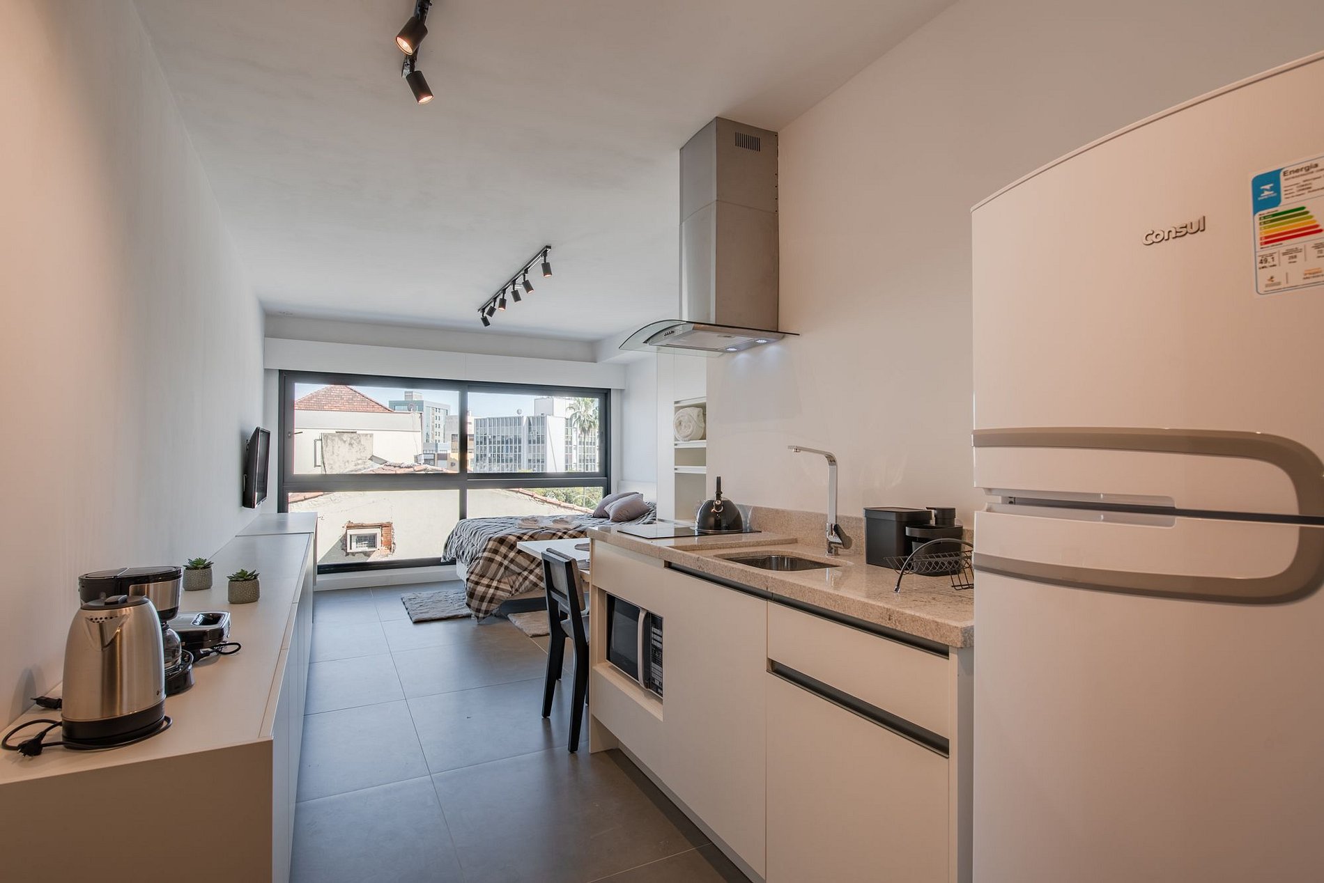 O imóvel é super aconchegante e muito funcional. Possui uma cama de casal, e uma cama de solteiro auxiliar, ideal para criança ou adulto pequeno, banheiro super bem iluminado com chuveiro excelente. O apartamento ainda conta com ar-condicionado (SPLIT), armários com cabides, SmartTV, WI-FI super rápido (ótimo para trabalhar), utensílios básicos de cozinha incluindo cafeteira, torradeira, chaleira, fogão de indução, microondas, também conta com roupa de cama e banho, secador de cabelo, ferro de passar roupas e amenities (shampoo, condicionador e sabonete). Imóvel com 1 vaga de garagem coberta.