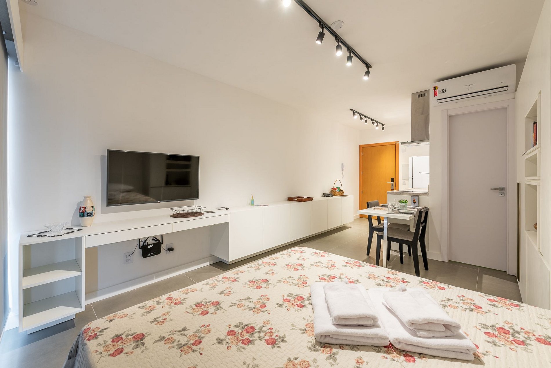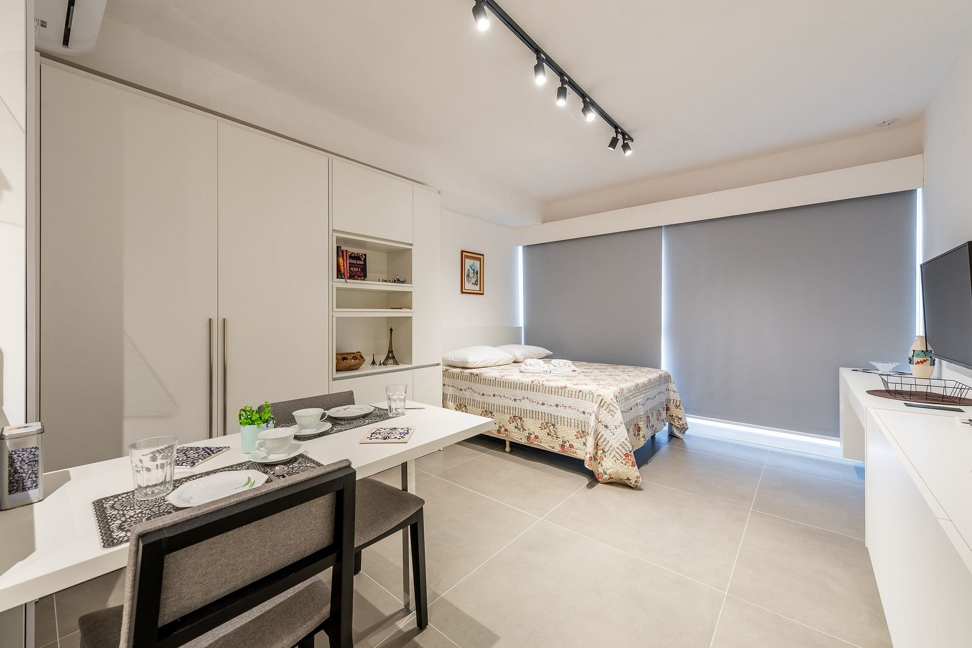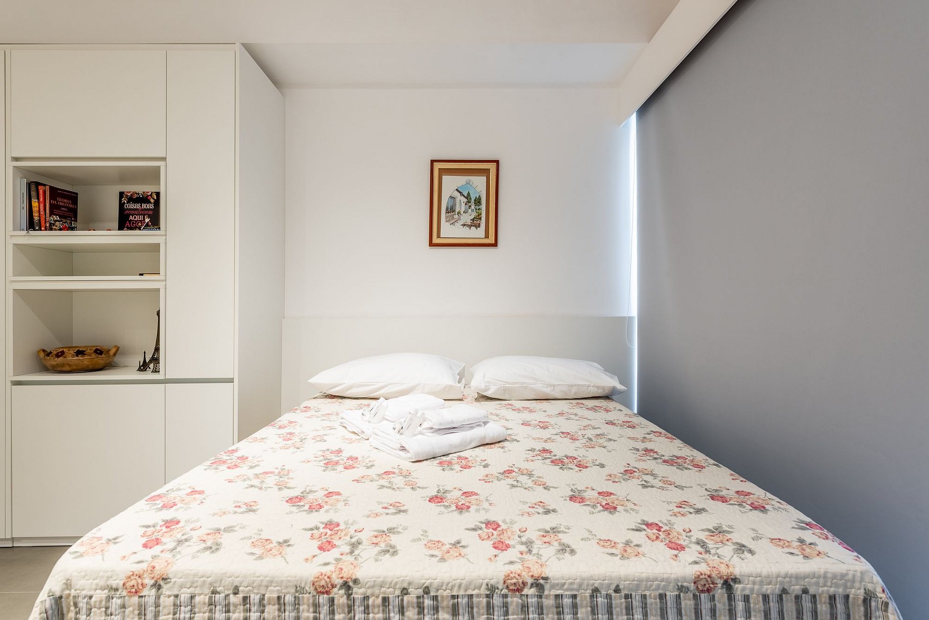 O imóvel é super aconchegante e muito funcional. Possui uma cama de casal, banheiro super bem iluminado com chuveiro excelente. O apartamento ainda conta com ar-condicionado (SPLIT), armários com cabides, SmartTV, WI-FI super rápido (ótimo para trabalhar), utensílios básicos de cozinha incluindo cafeteira, torradeira, chaleira elétrica, fogão de indução, microondas, também conta com roupa de cama e banho, secador de cabelo, e amenities (shampoo, condicionador e sabonete). Imóvel com 1 vaga de garagem coberta. Estão a disposição junto a portaria: mais cobertas ou travesseiros, podem ser solicitados durante a estadia. Na lavanderia do prédio tem ferro de passar roupas.