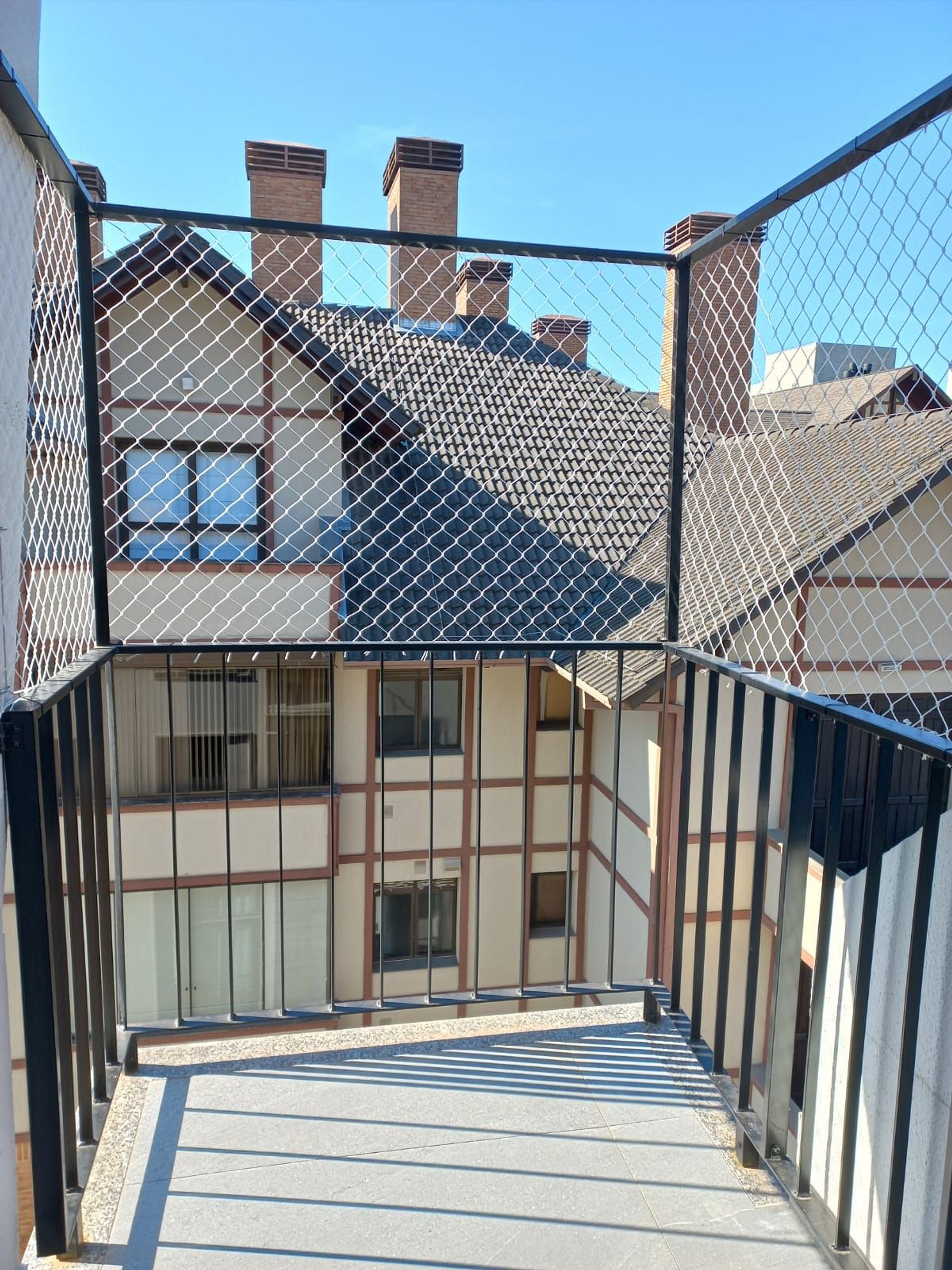 The apartment has a safety net on the windows for the safety of children.
