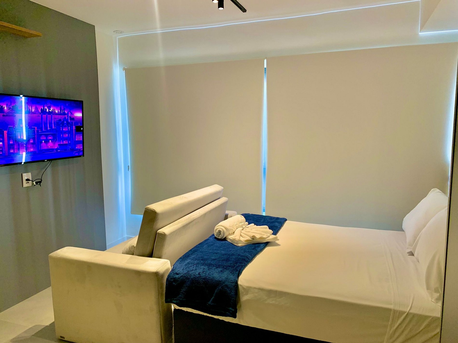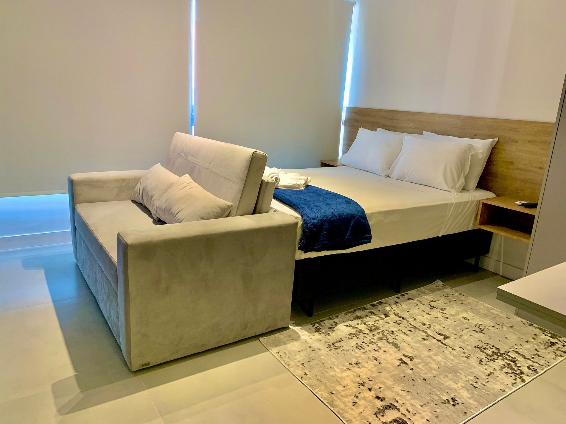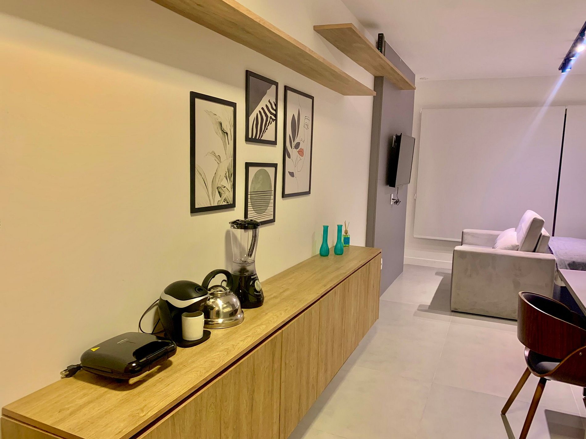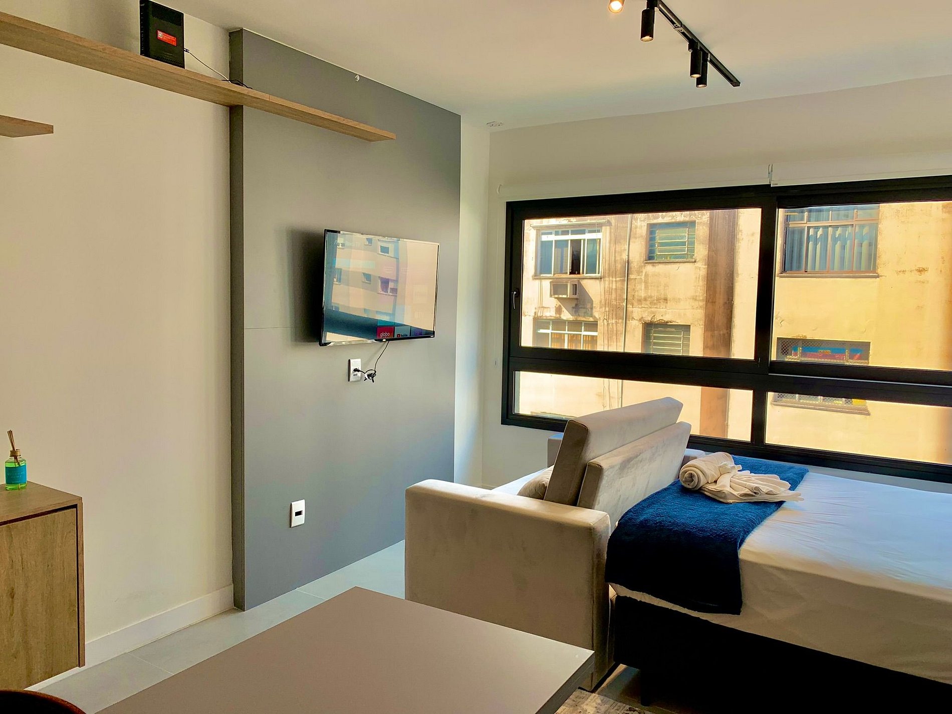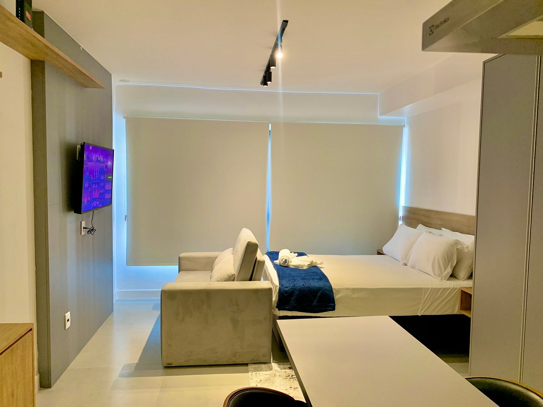 O imóvel é muito aconchegante e funcional. Conta com uma cama de casal, banheiro bem iluminado com chuveiro de ótima qualidade, além de ar-condicionado (split), armários com cabides, Smart TV, Wi-Fi de alta velocidade (ideal para trabalho), e utensílios básicos de cozinha como cafeteira, sanduicheira, chaleira, liquidificador, fogão de indução e micro-ondas. Oferecemos roupa de cama e banho, amenities (shampoo, condicionador e sabonete), secador de cabelo e ferro de passar roupas. O imóvel possui 1 vaga de garagem coberta.