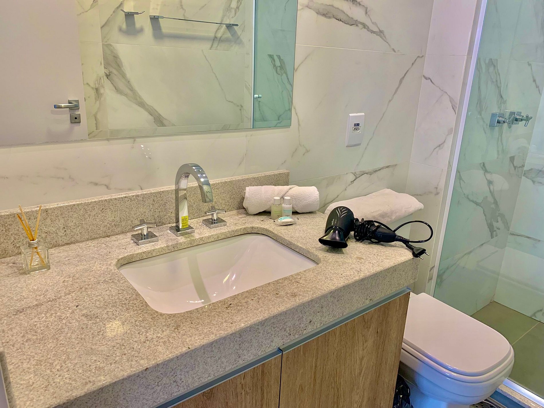 A recepção funciona 24 horas, permitindo o check-in em qualquer horário após as 15h. Após a confirmação da reserva, é necessário informar antecipadamente o número do documento e a placa do veículo, conforme regras do condomínio. Qualquer item danificado durante a hospedagem será cobrado.