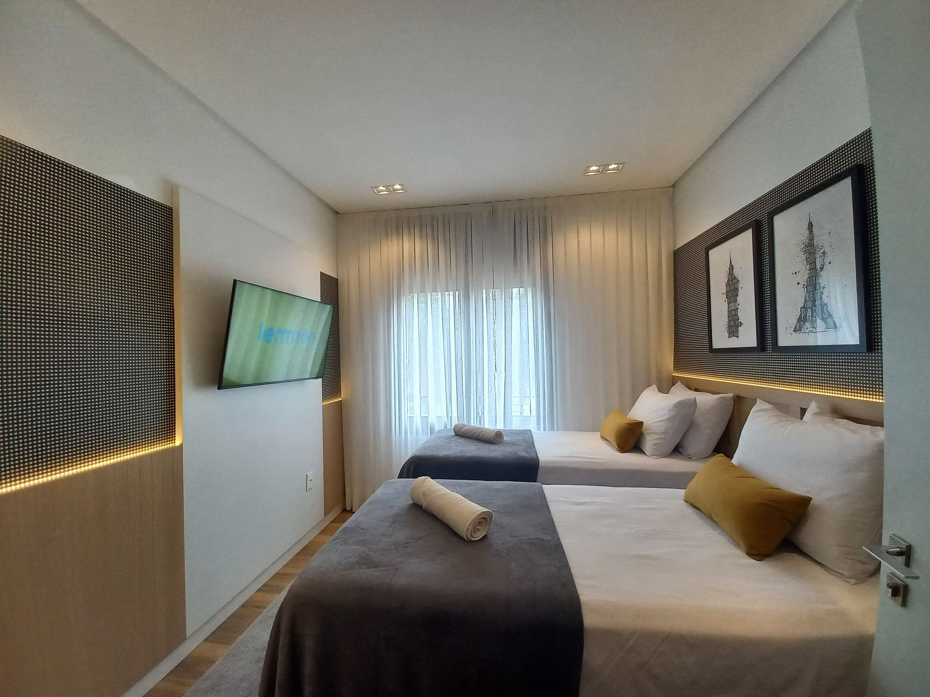O apartamento é moderno, aconchegante e muito funcional. Possui uma suíte com cama de casal e cama de solteiro auxiliar, um segundo quarto com duas camas de solteiro, além de um confortável sofá-cama na sala, acomodando até 7 pessoas com praticidade.