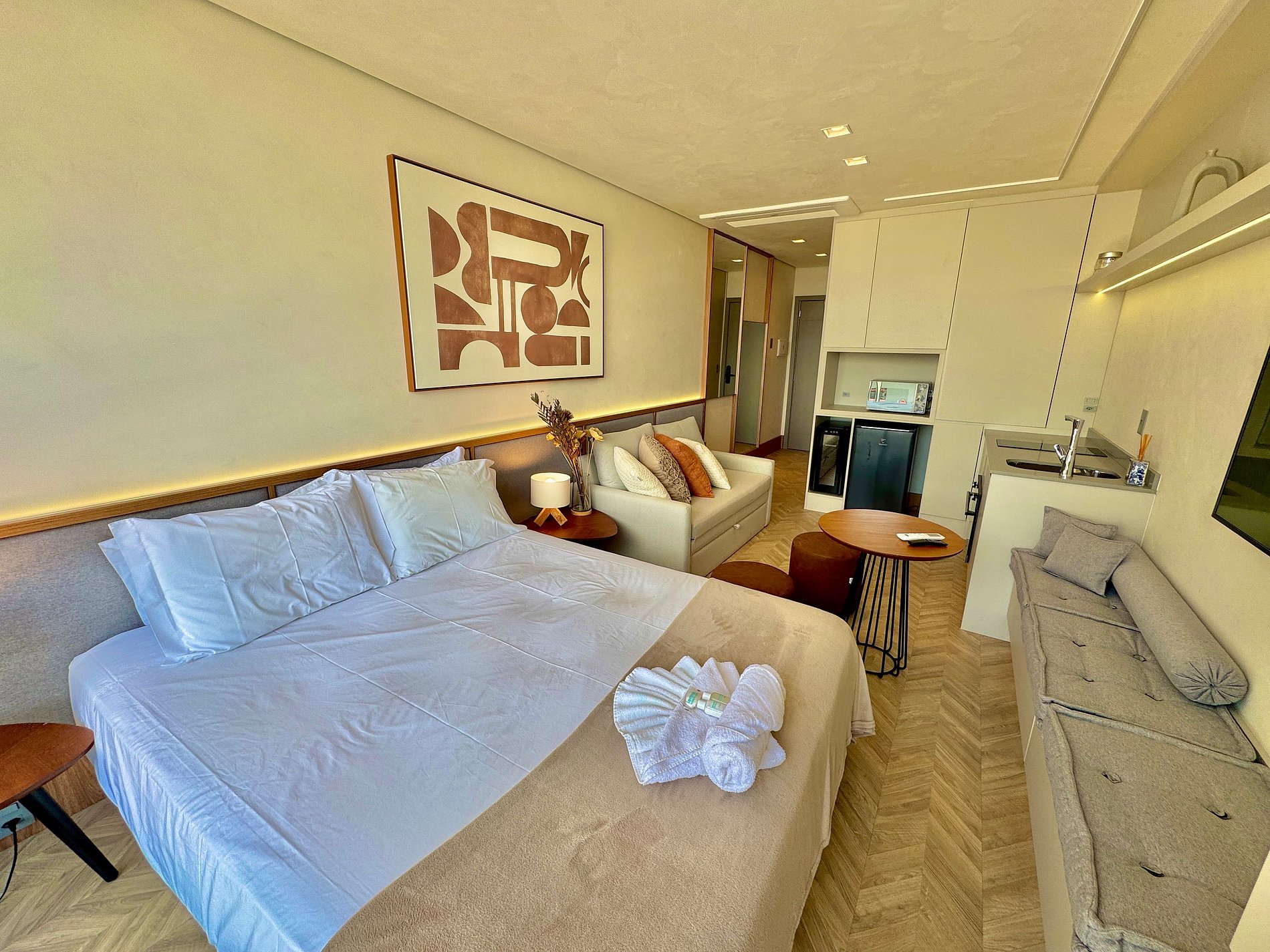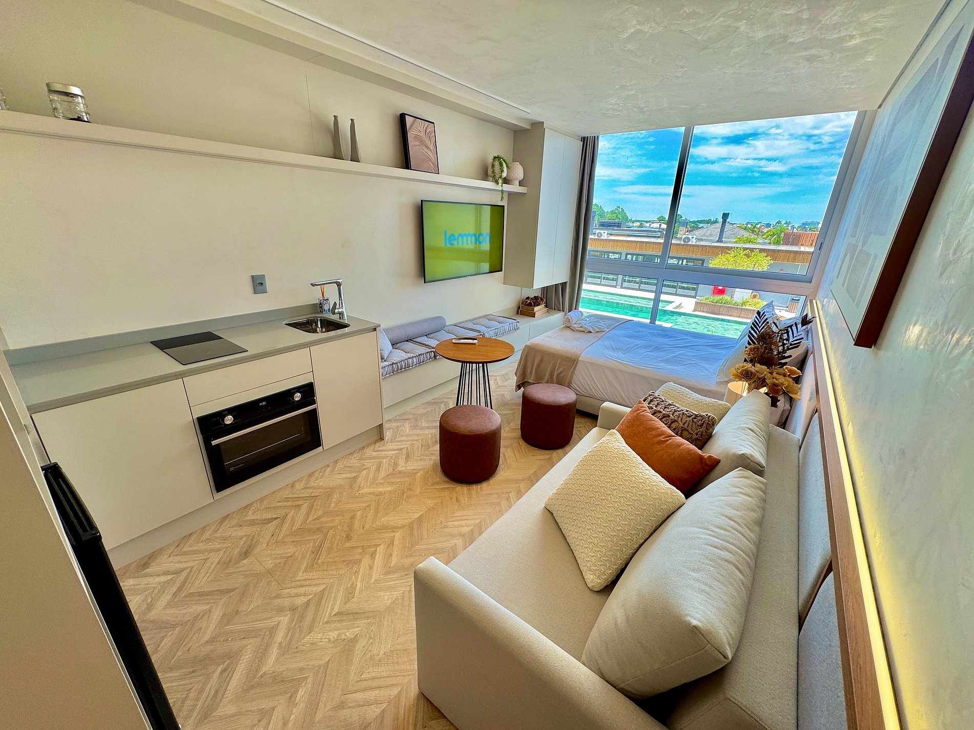 Loft con 26m² internos ubicado en el corazón de Atlântida-RS. El apartamento cuenta con todos los elementos de confort para que tu estancia sea perfecta, incluyendo aire acondicionado. Infraestructura completa de ocio con piscinas, salón de fiestas, gimnasio, Espacio Kids y Teen y servicios de hotelería. Voltaje del apartamento 220V.