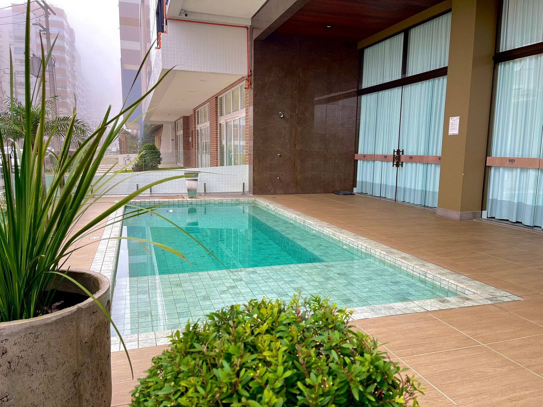 El edificio cuenta con piscina para relajarse en familia.