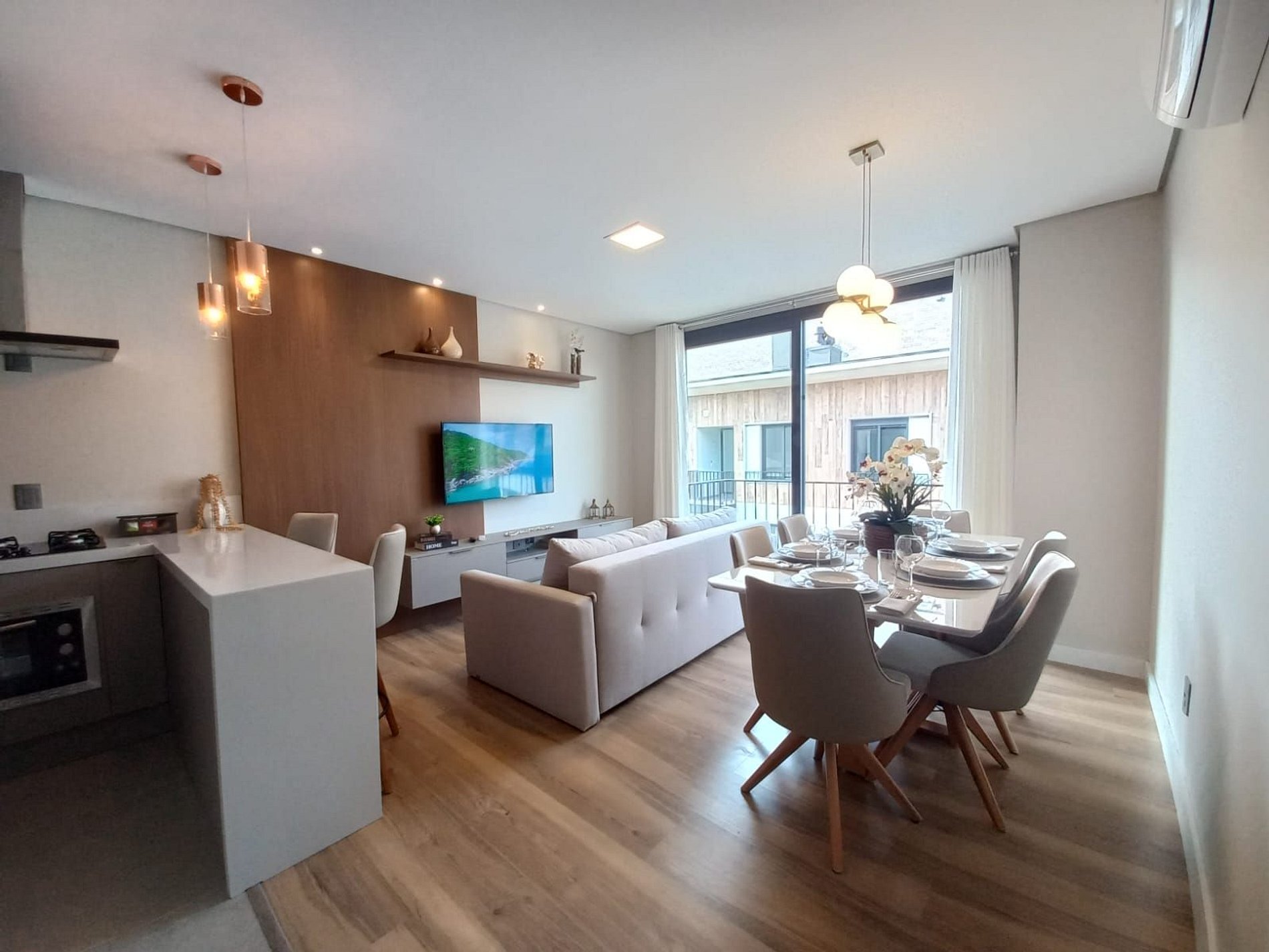 Apartamento de 1 dormitorio para estrenar, completo y cerca de todo. En el corazón de Gramado. Tiene capacidad para 4 personas cómodamente.