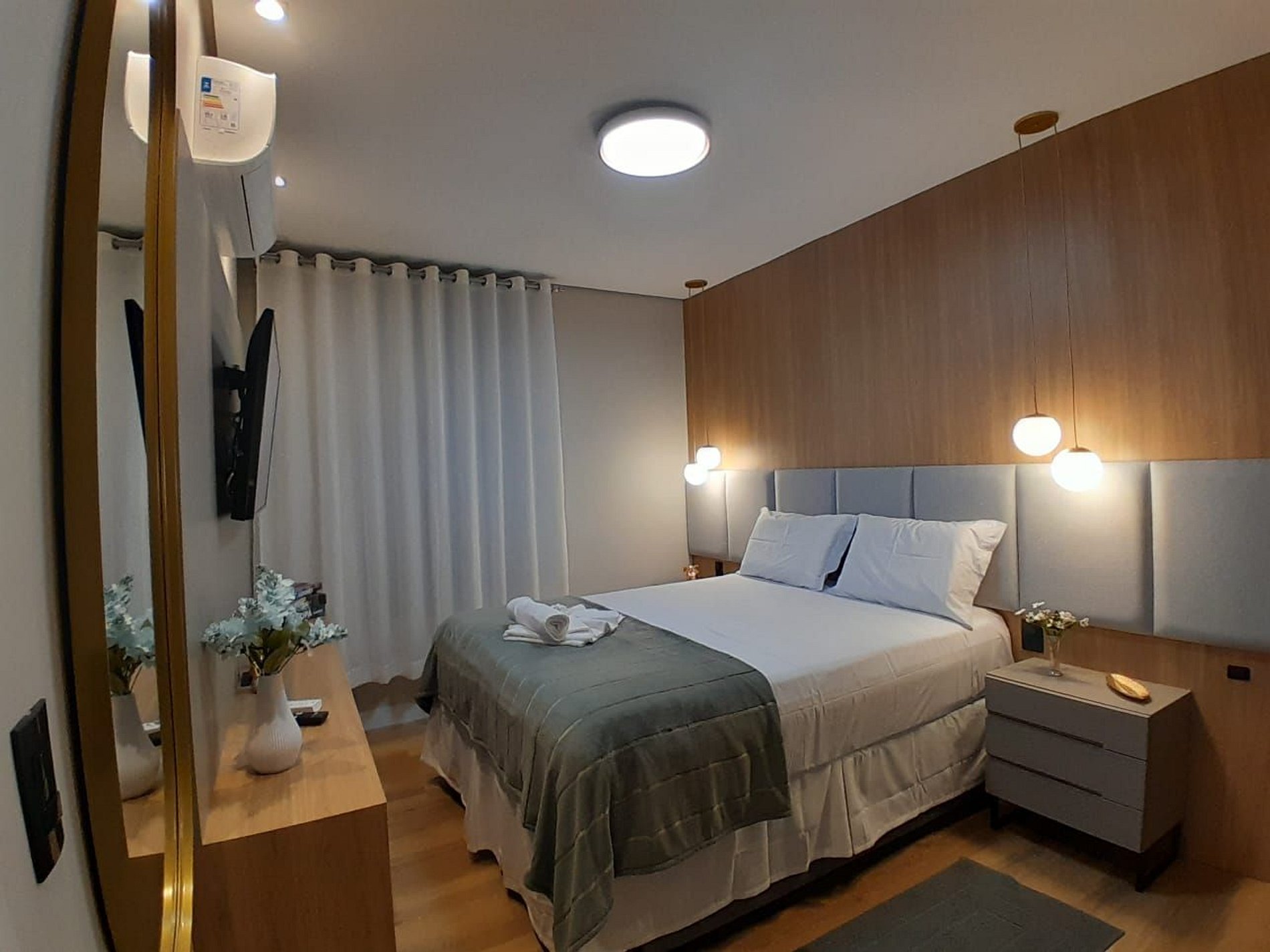 Apartamento de 1 dormitorio para estrenar, completo y cerca de todo. En el corazón de Gramado. Tiene capacidad para 4 personas cómodamente.
