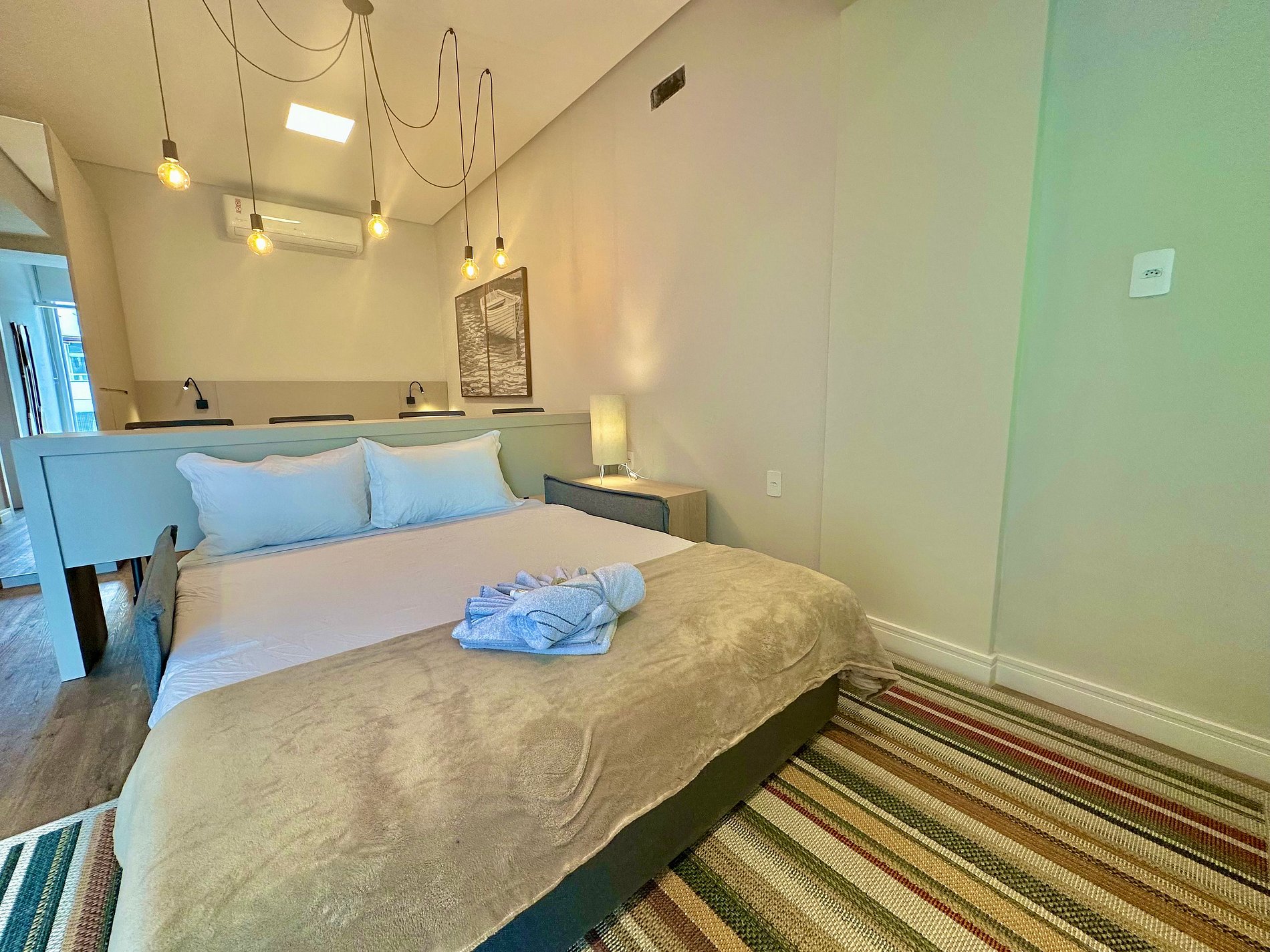 Loft súper completo para 4 personas en el centro de Capão da Canoa, que incluye aire acondicionado y lavadora y secadora. A 04 cuadras de la playa y garaje para un auto.