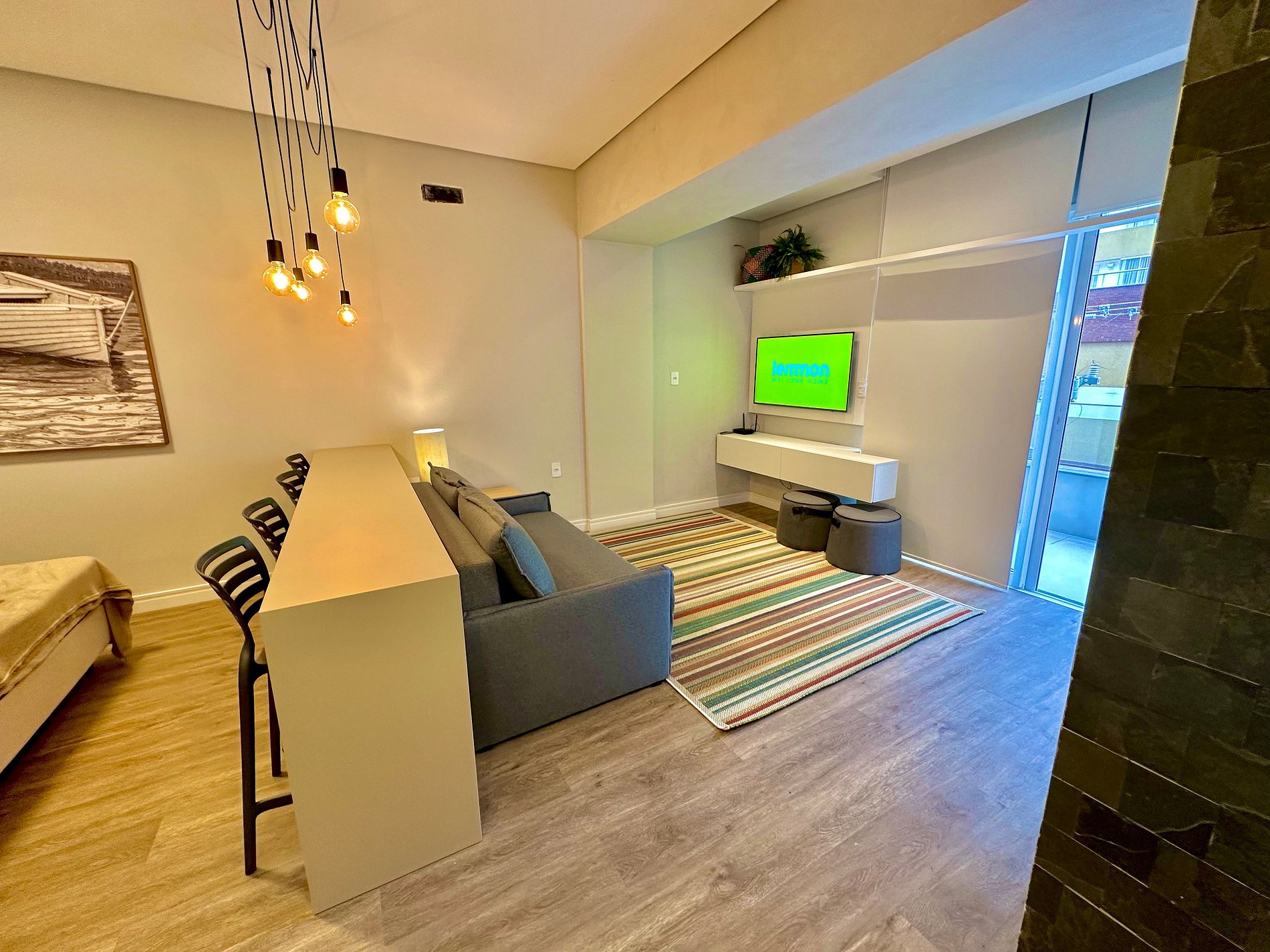 Loft súper completo para 4 personas en el centro de Capão da Canoa, que incluye aire acondicionado y lavadora y secadora. A 04 cuadras de la playa y garaje para un auto.