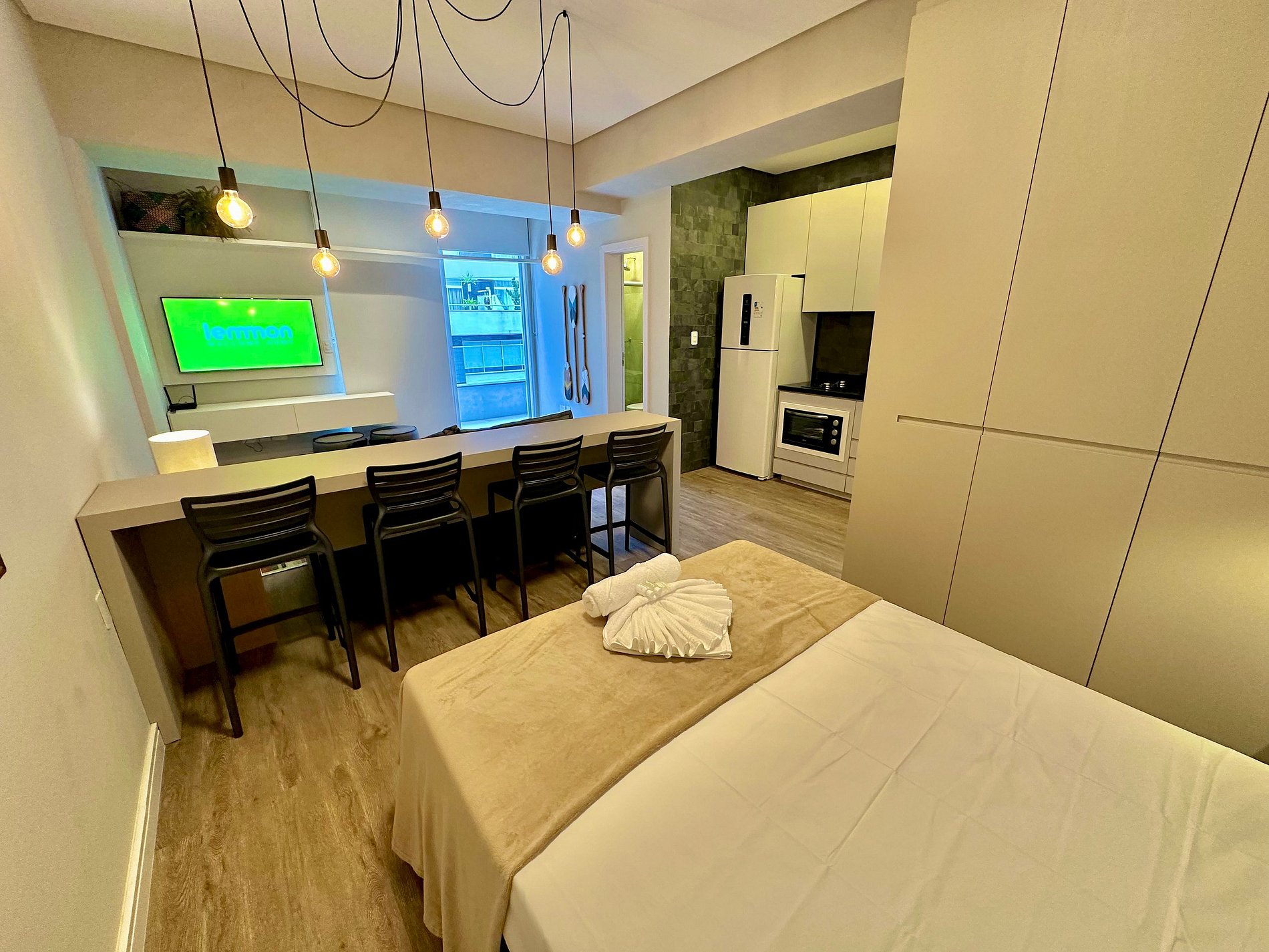 Loft súper completo para 4 personas en el centro de Capão da Canoa, que incluye aire acondicionado y lavadora y secadora. A 04 cuadras de la playa y garaje para un auto.