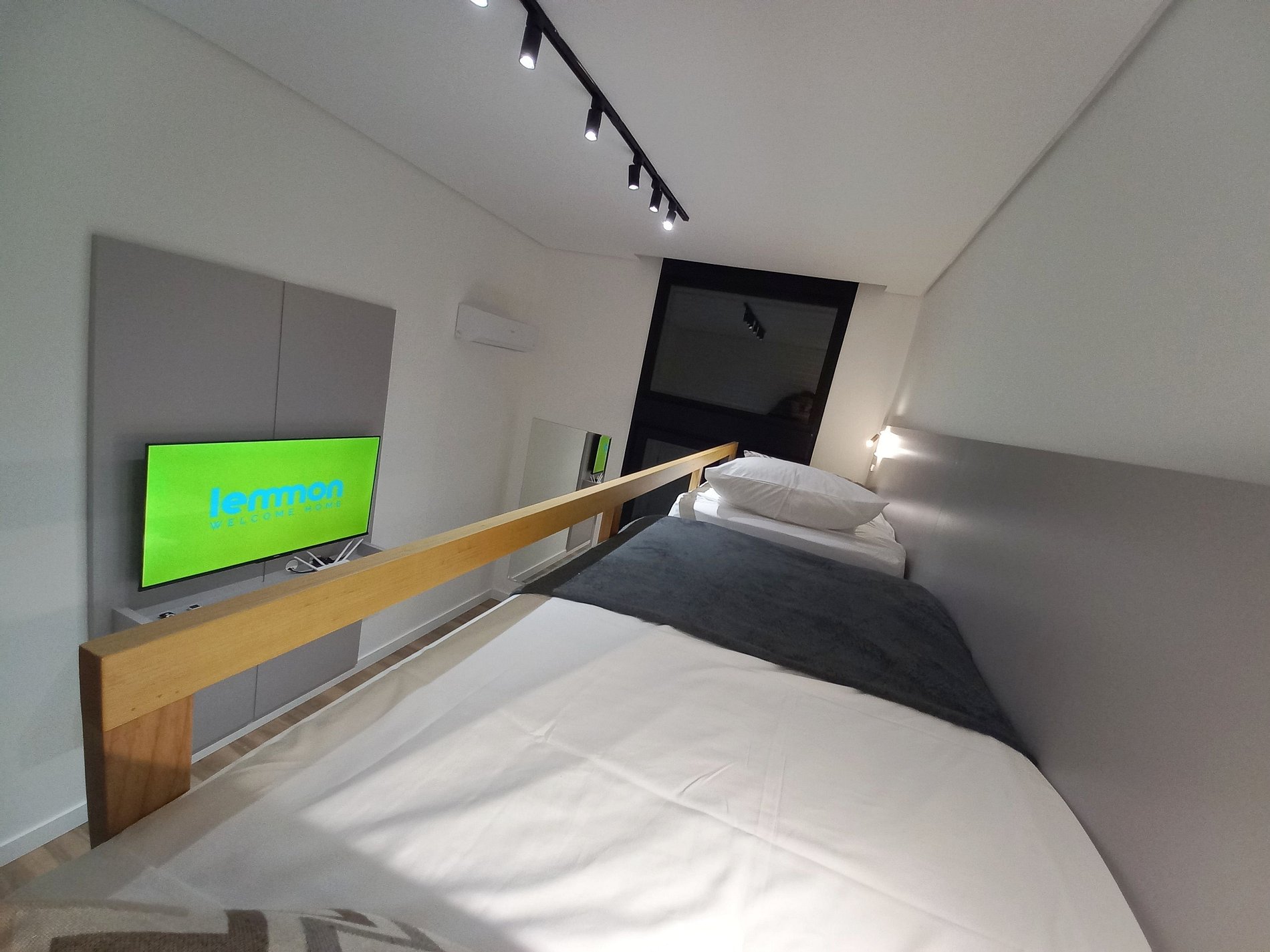 Apartamento nuevo y céntrico con dormitorio con cama matrimonial y dos camas individuales arriba, muy completo y cerca de todo, en el corazón de Gramado. Con chimenea, plaza de garaje, aire acondicionado y lavadora-secadora.