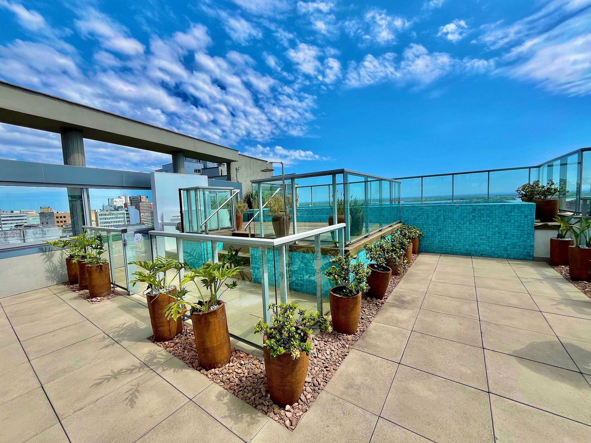 O terraço do Town.co conta com vista de tirar o fôlego para toda a cidade, dispõe também de piscina externa academia, espaço com churrasqueira, lavanderia e um mercadinho a sua disposição, além de portaria 24h.