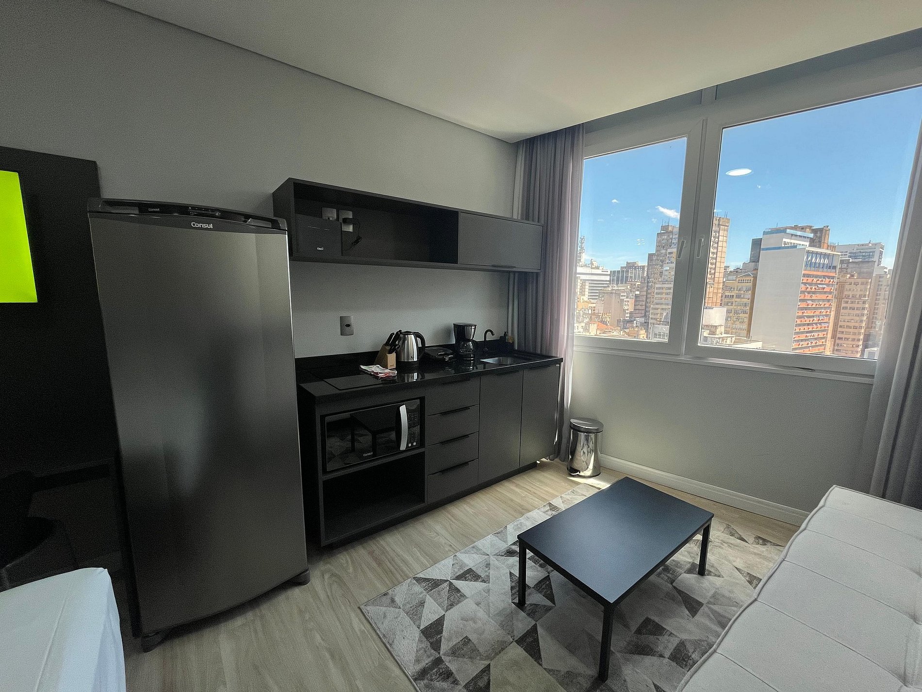 O imóvel é super aconchegante e muito funcional. Possui banheiro bem iluminado com chuveiro excelente. O apartamento ainda conta com ar-condicionado (SPLIT), armários com cabides, SmartTV, WI-FI super rápido (ótimo para trabalhar), utensílios básicos de cozinha incluindo cafeteira, microondas, chaleira elétrica, também conta com roupa de cama e banho, secador de cabelo e amenities (shampoo, condicionador e sabonete).