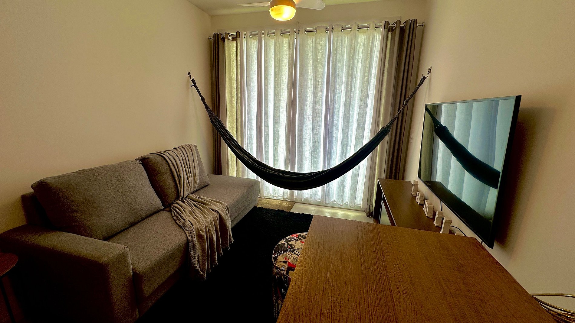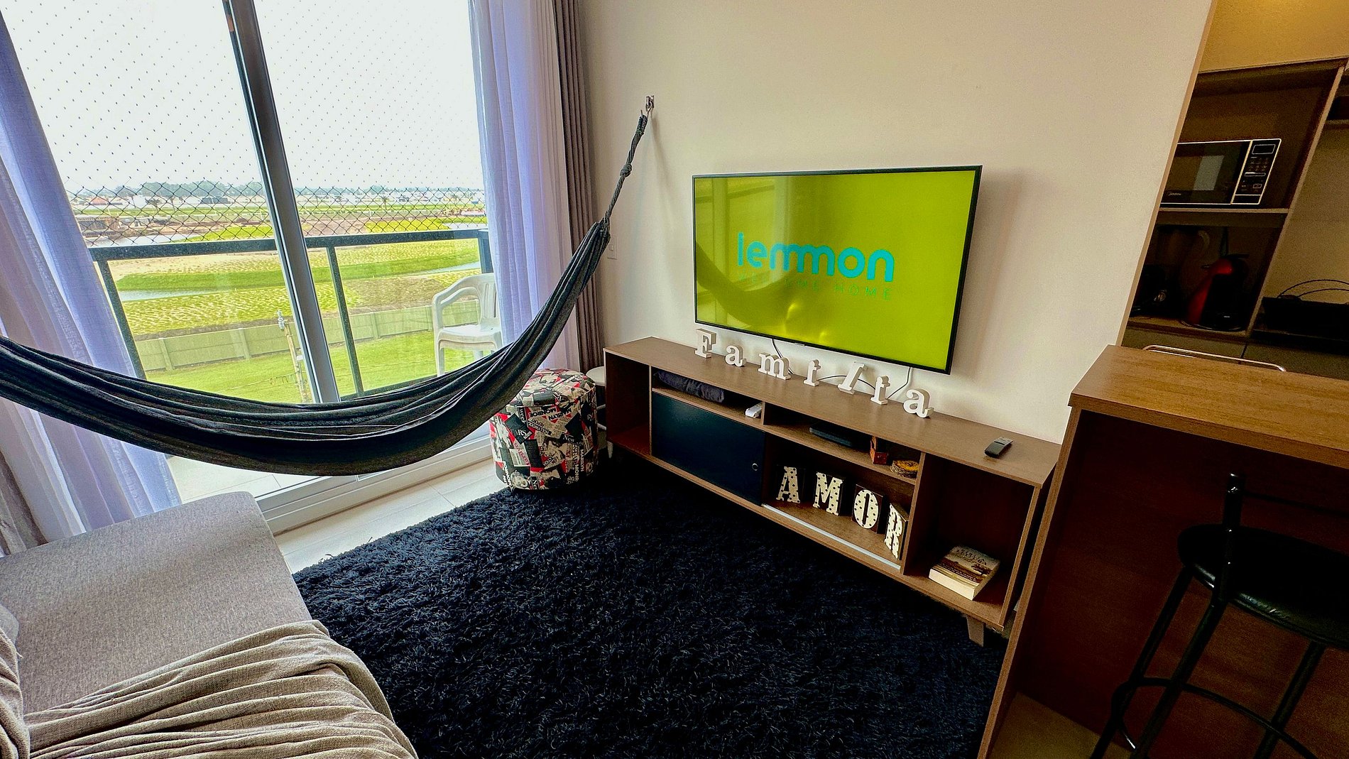 O condomínio oferece uma infraestrutura completa para garantir momentos de lazer e relaxamento. Entre os destaques estão a piscina adulta e infantil ao ar livre, academia equipada, brinquedoteca para os pequenos e diversos espaços planejados para você aproveitar com conforto e tranquilidade. O apartamento é finamente mobiliado e pensado nos detalhes para tornar sua estadia ainda mais prática e agradável. Conta com diversos eletrodomésticos que facilitam o dia a dia, como máquina lava e seca, cafeteira, chaleira elétrica, liquidificador, além de utensílios completos de cozinha. Tudo preparado com carinho para que você se sinta em casa, mesmo longe dela.