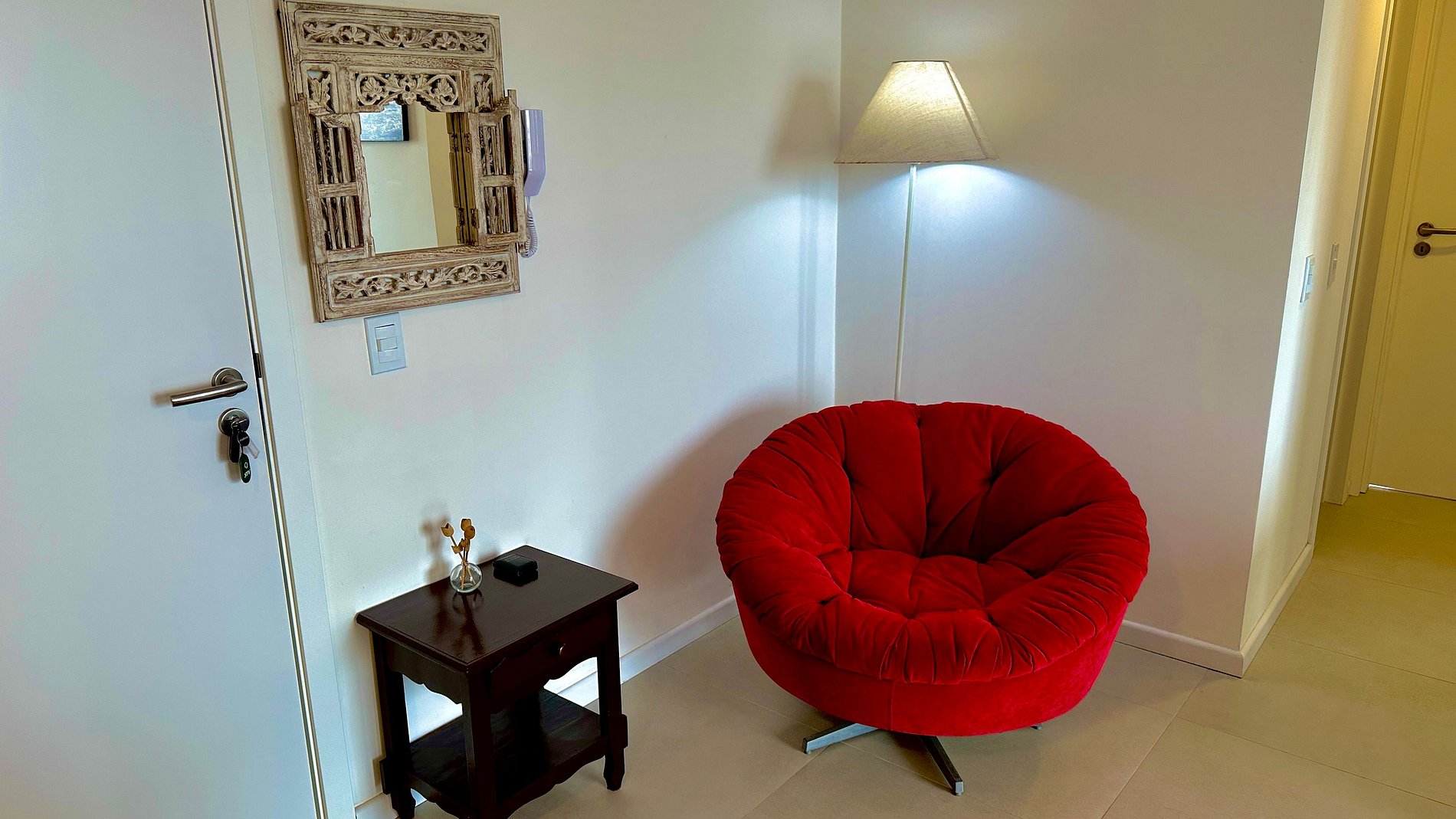 Área de estar com sofá/cadeira