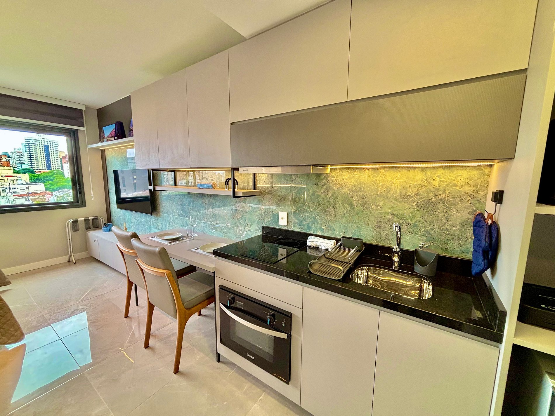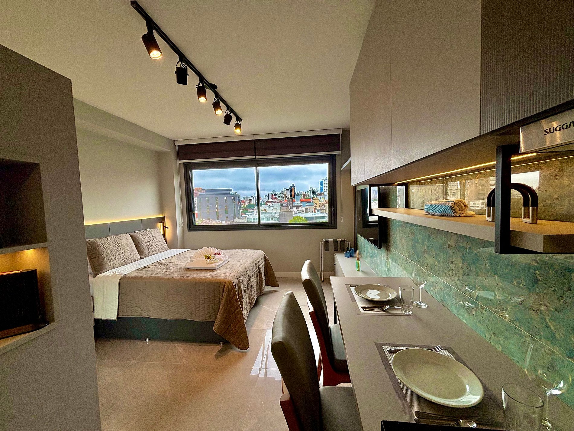 O apartamento é extremamente aconchegante, funcional e bem equipado, ideal para quem busca conforto e praticidade. Conta com uma cama casal confortável e um banheiro com um chuveiro excelente. O ambiente é climatizado com ar-condicionado tipo split e oferece armários com cabides, além de uma Smart TV e Wi-Fi de alta velocidade — perfeito para quem precisa trabalhar durante a estadia.