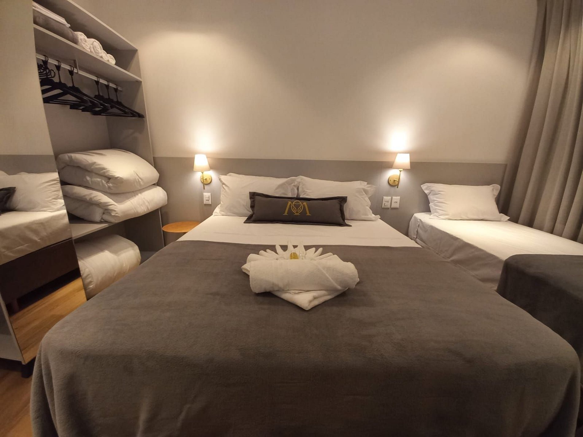 Colocamos 1 enxoval de roupa de cama e banho por apartamento, não temos troca inclusa durante a hospedagem. Temos serviço de camareira com ou sem troca de enxoval disponível mediante agendamento e com custo adicional.