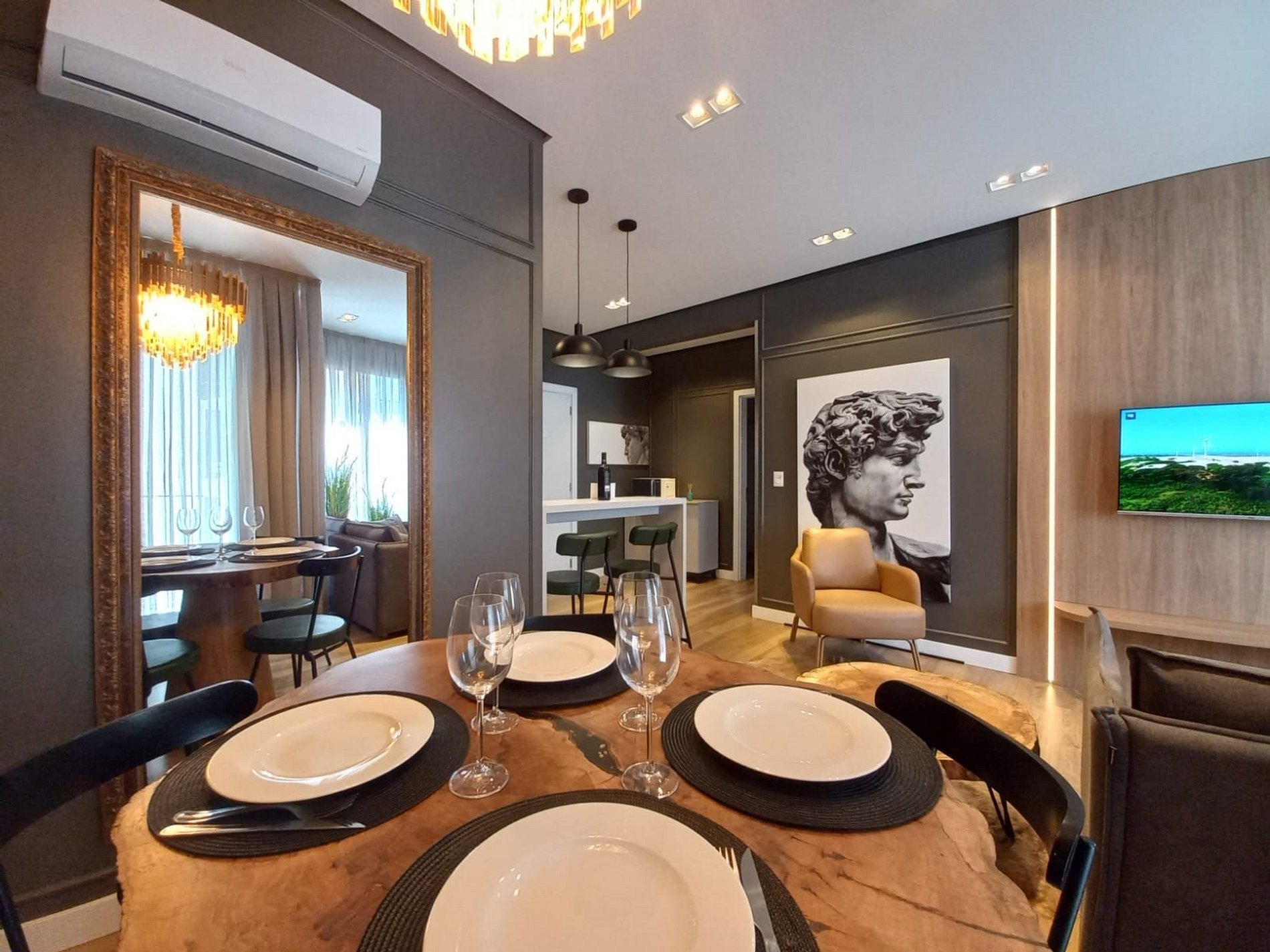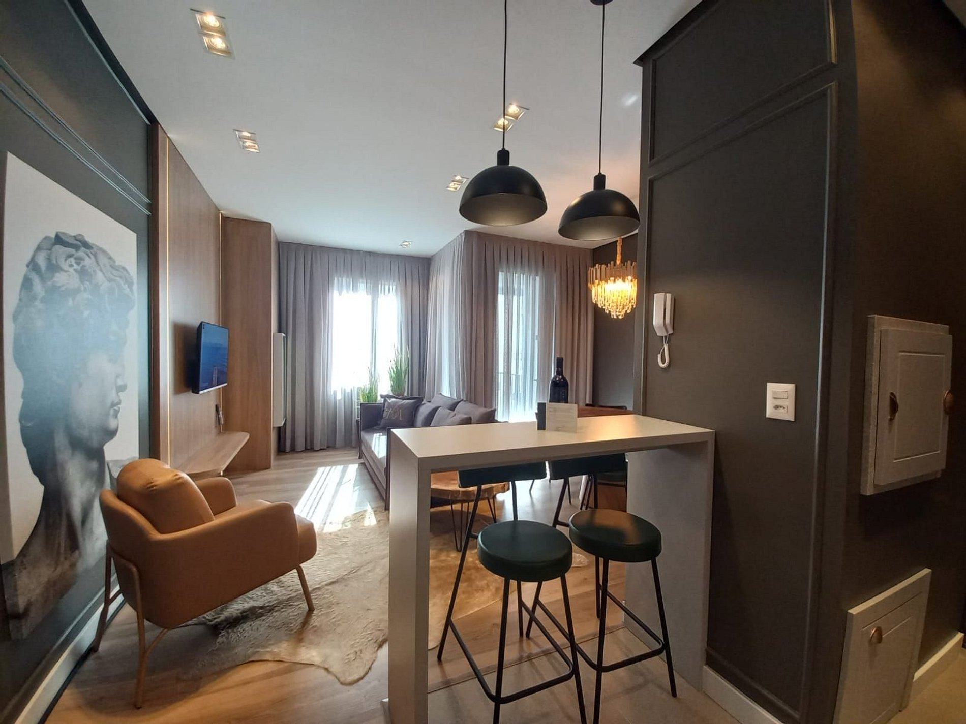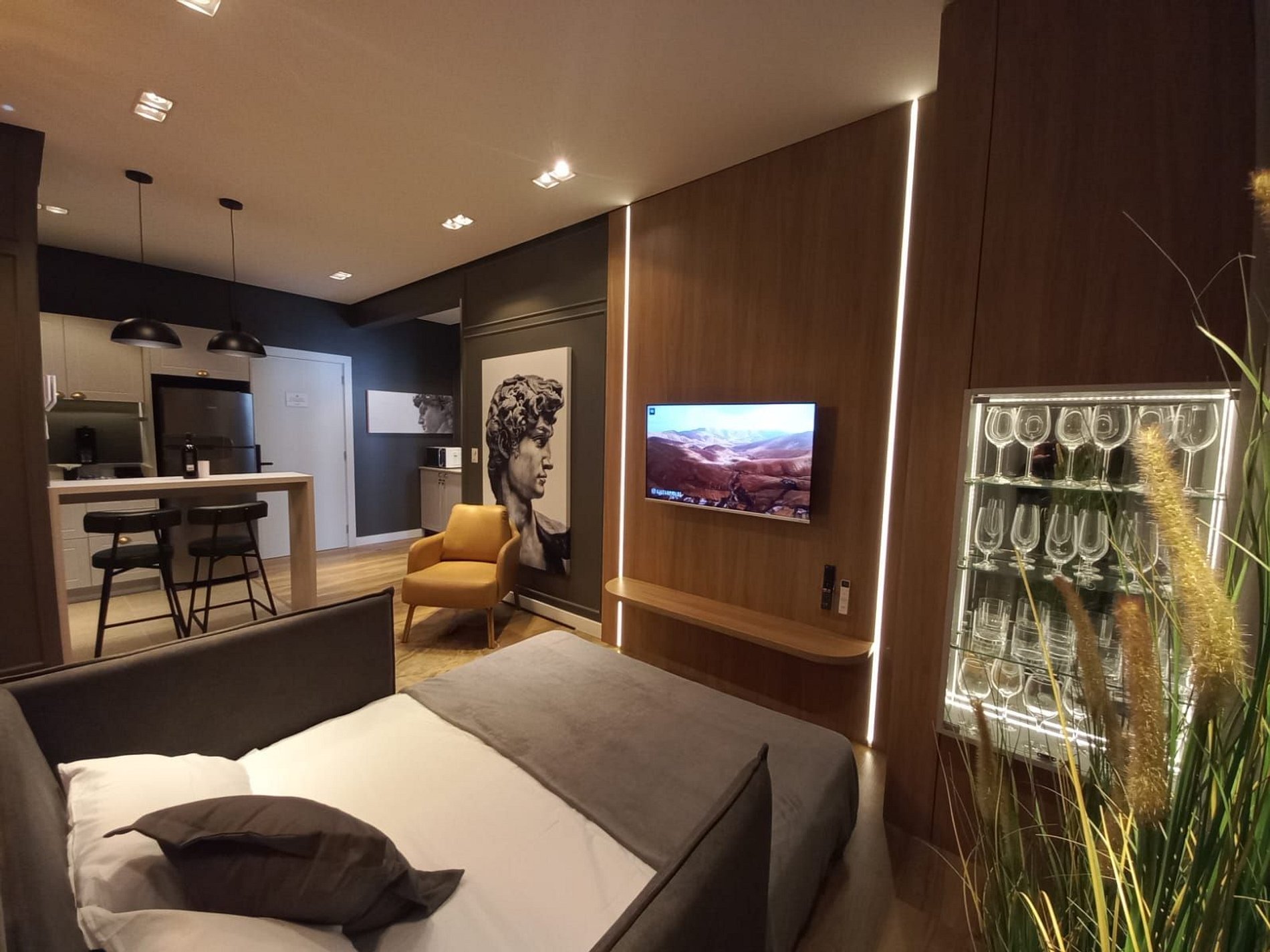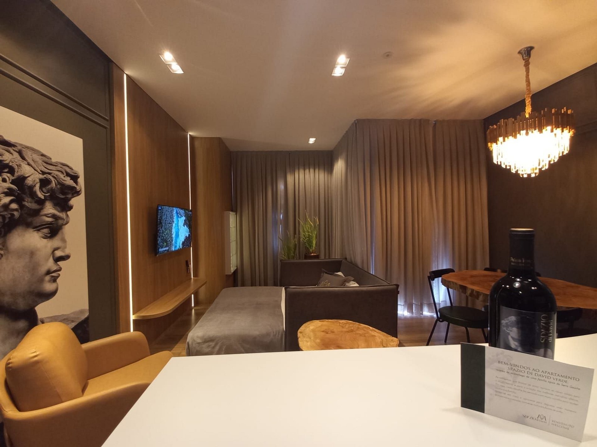 Apartamento de 01 dormitório novinho, completo e perto de tudo. No coração de Gramado. Acomoda até 05 pessoas confortavelmente.