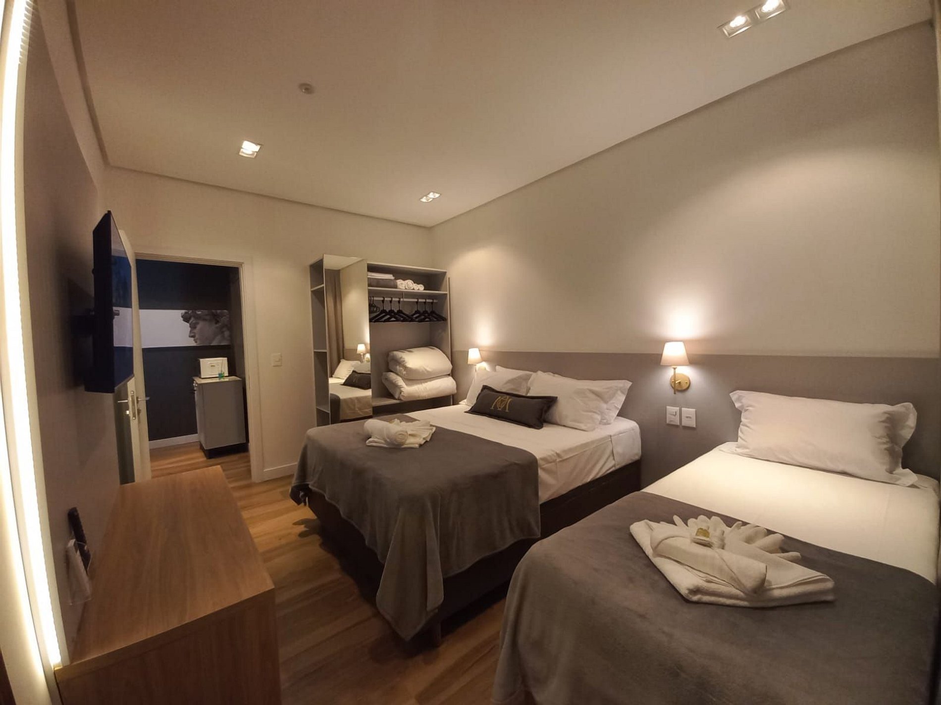Colocamos 1 enxoval de roupa de cama e banho por apartamento, não temos troca inclusa durante a hospedagem. Temos serviço de camareira com ou sem troca de enxoval disponível mediante agendamento e com custo adicional.