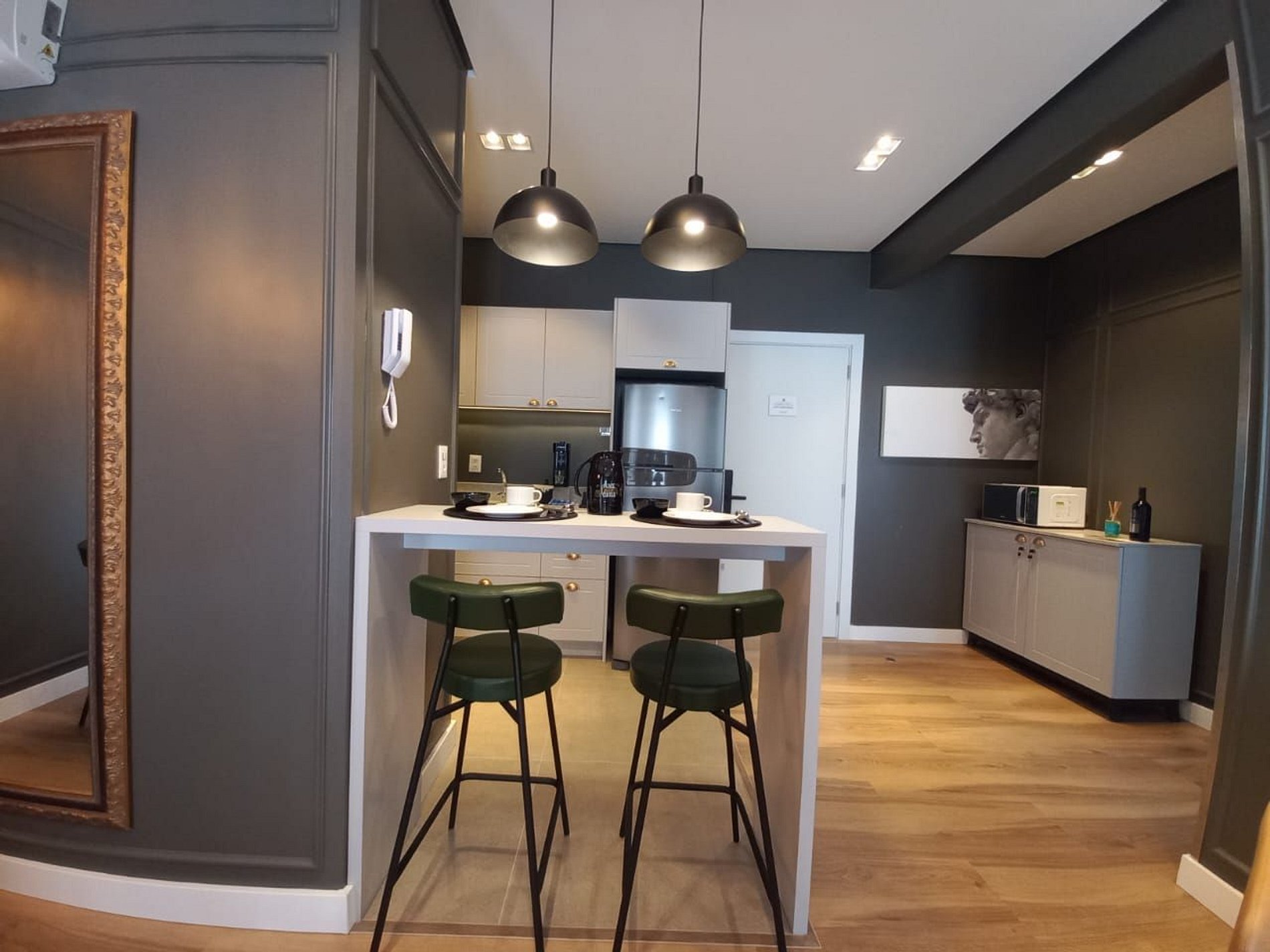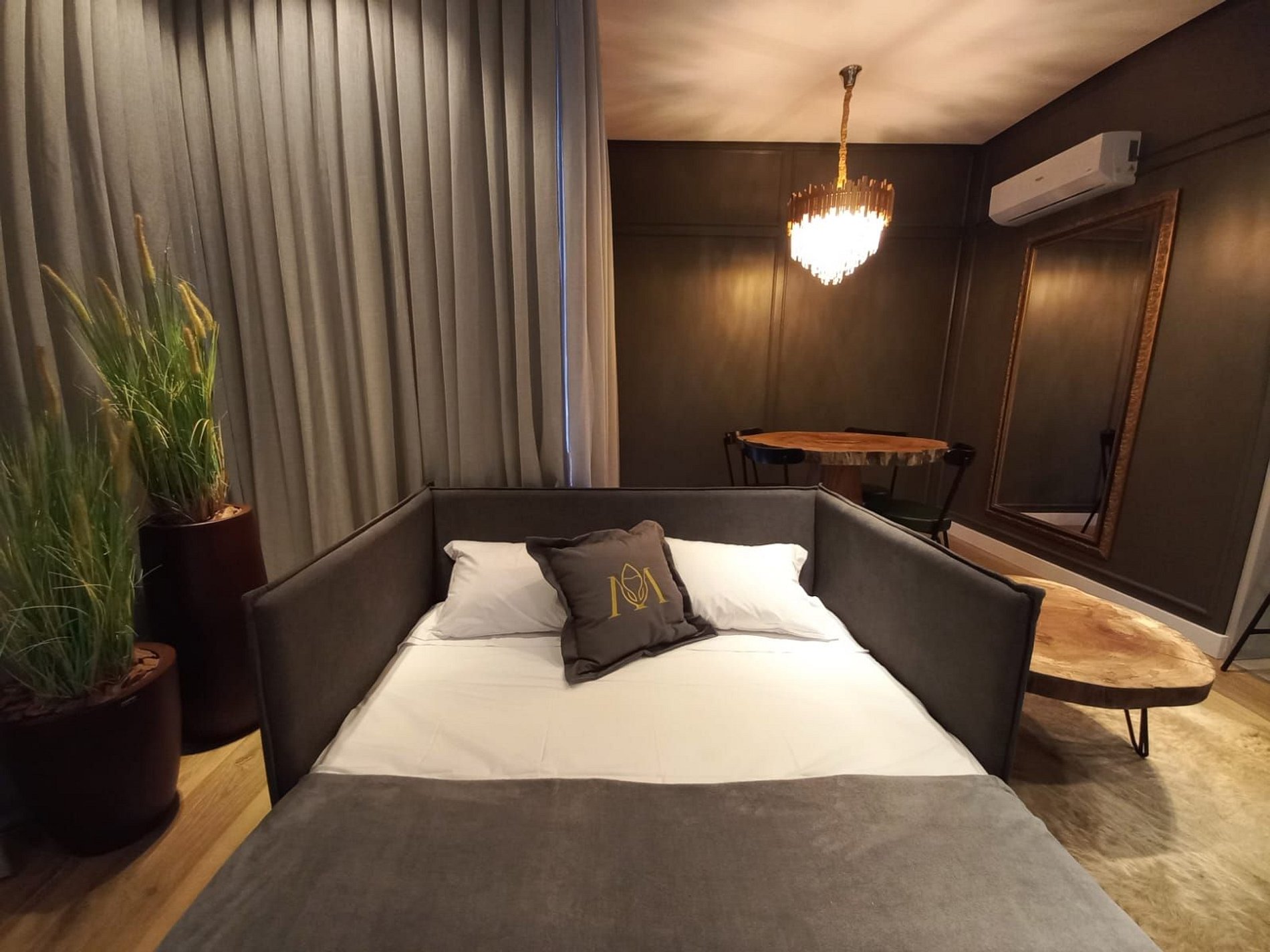 Apartamento de 01 dormitório novinho, completo e perto de tudo. No coração de Gramado. Acomoda até 05 pessoas confortavelmente.