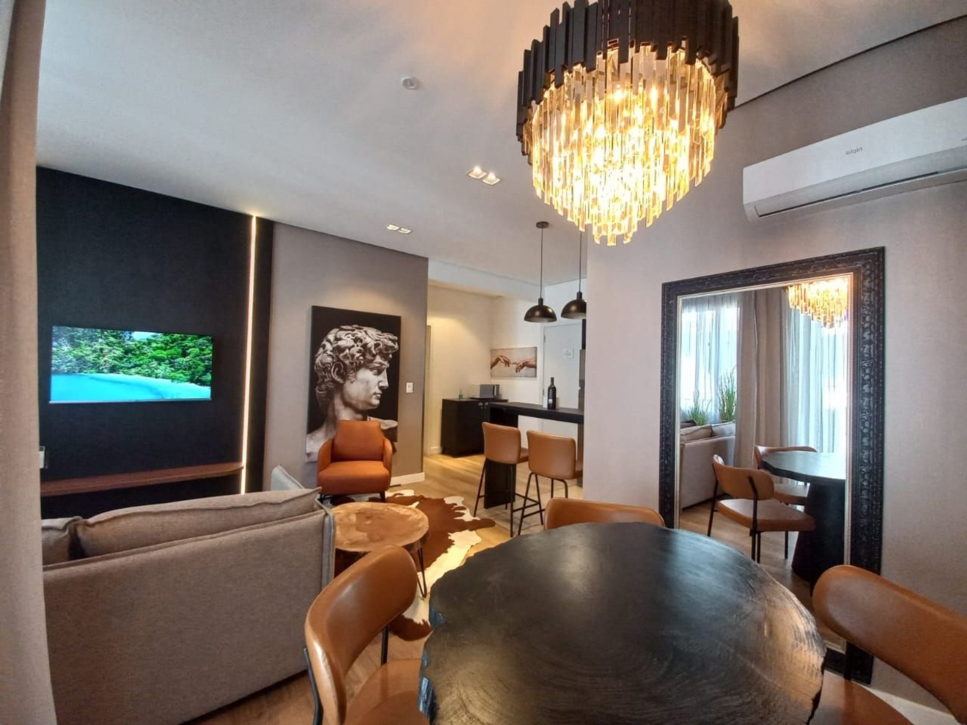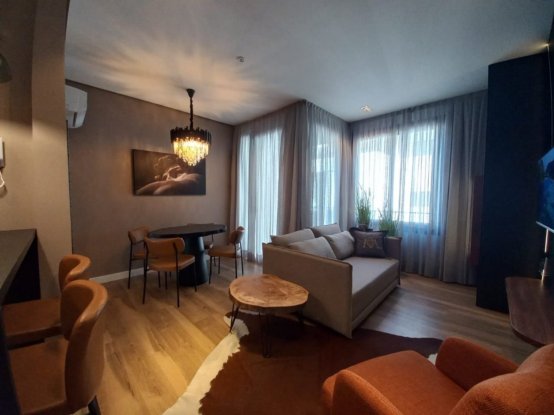 Apartamento de 01 dormitório novinho, completo e perto de tudo. No coração de Gramado. Acomoda até 05 pessoas confortavelmente. o Apartamento conta com ar condicionado no quarto e na sala.