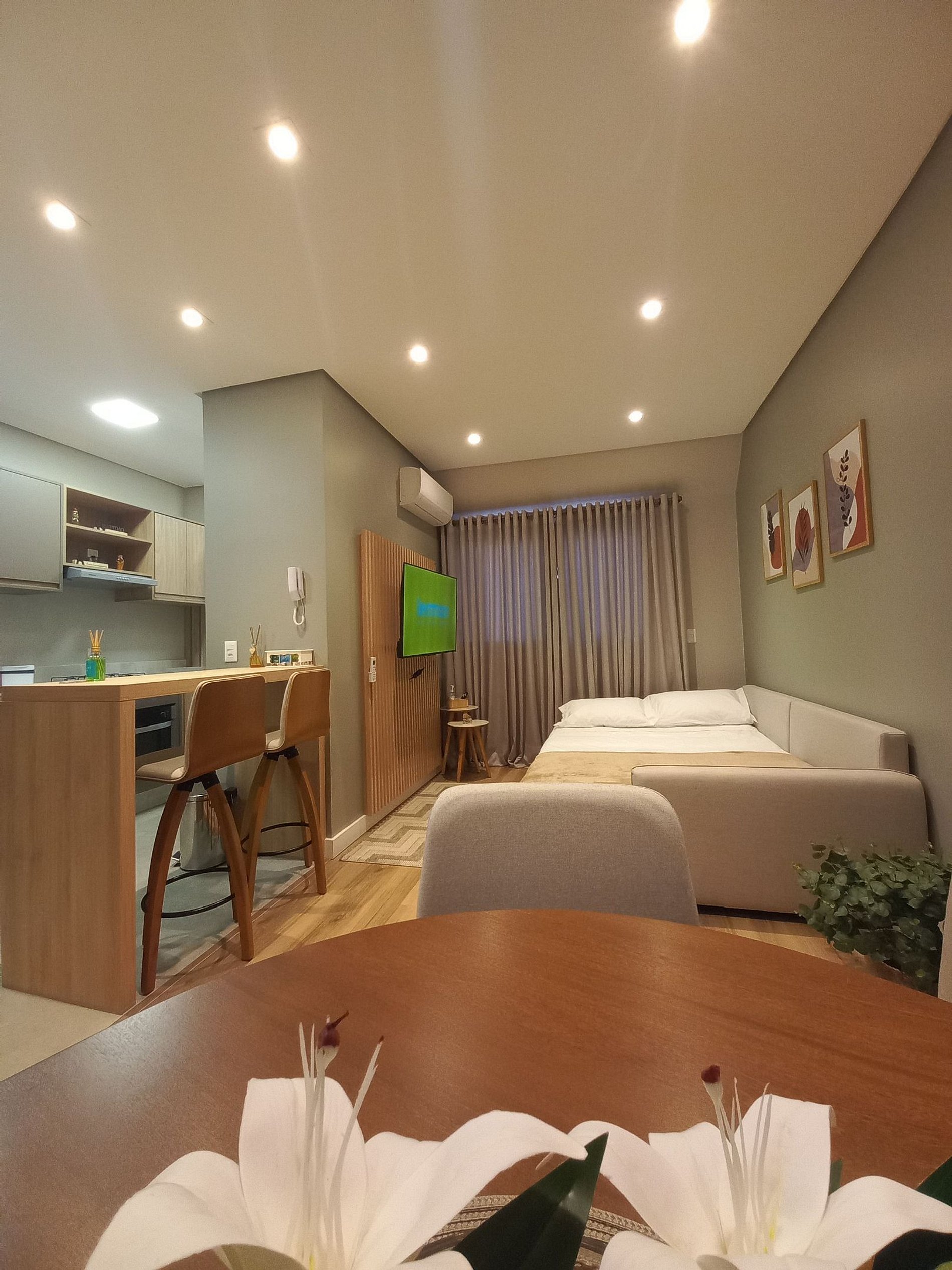 Apartamento de 01 dormitório novinho, completo e perto de tudo. No coração de Gramado. Acomoda até 05 pessoas confortavelmente.