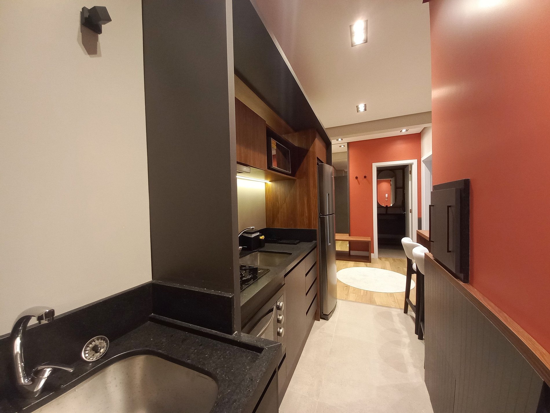 Apartamento de 01 dormitório novinho, completo e perto de tudo. No coração de Gramado. Acomoda até 05 pessoas confortavelmente.