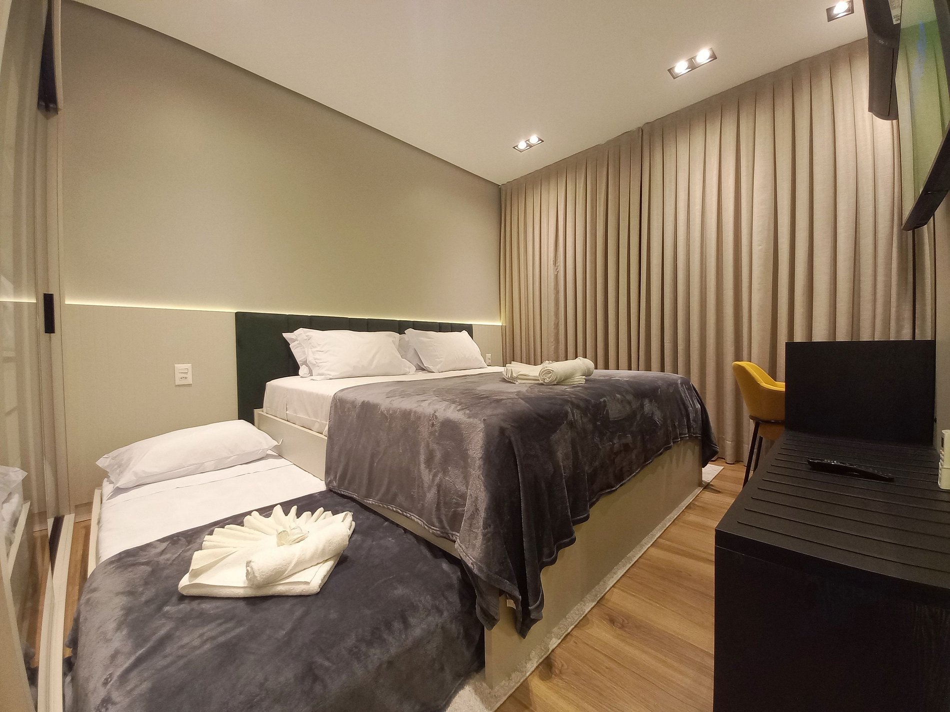 Apartamento de 01 dormitório novinho, completo e perto de tudo. No coração de Gramado. Acomoda até 05 pessoas confortavelmente.