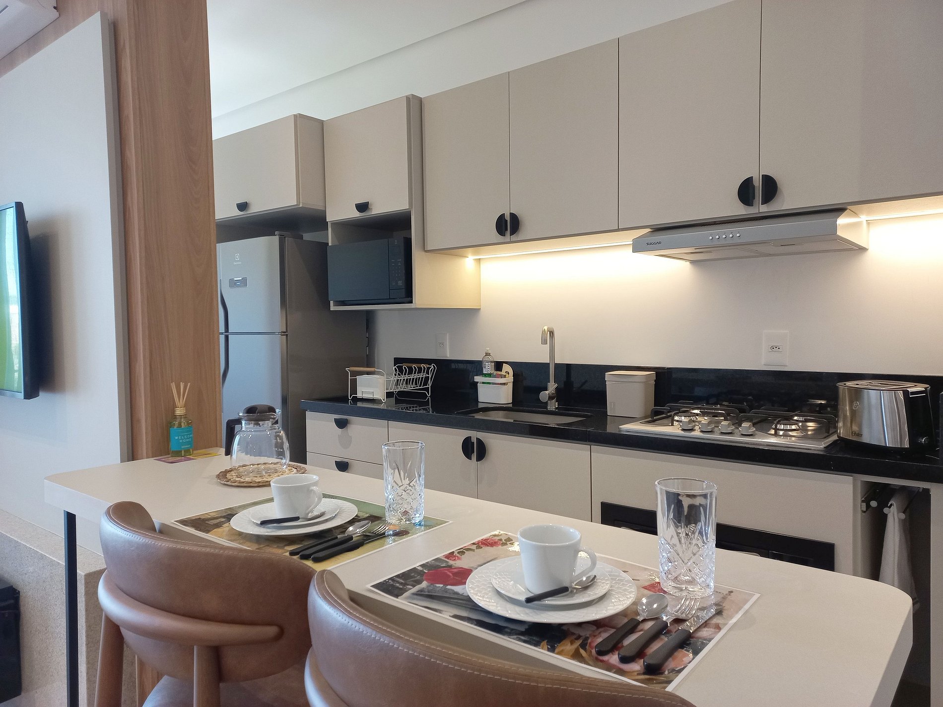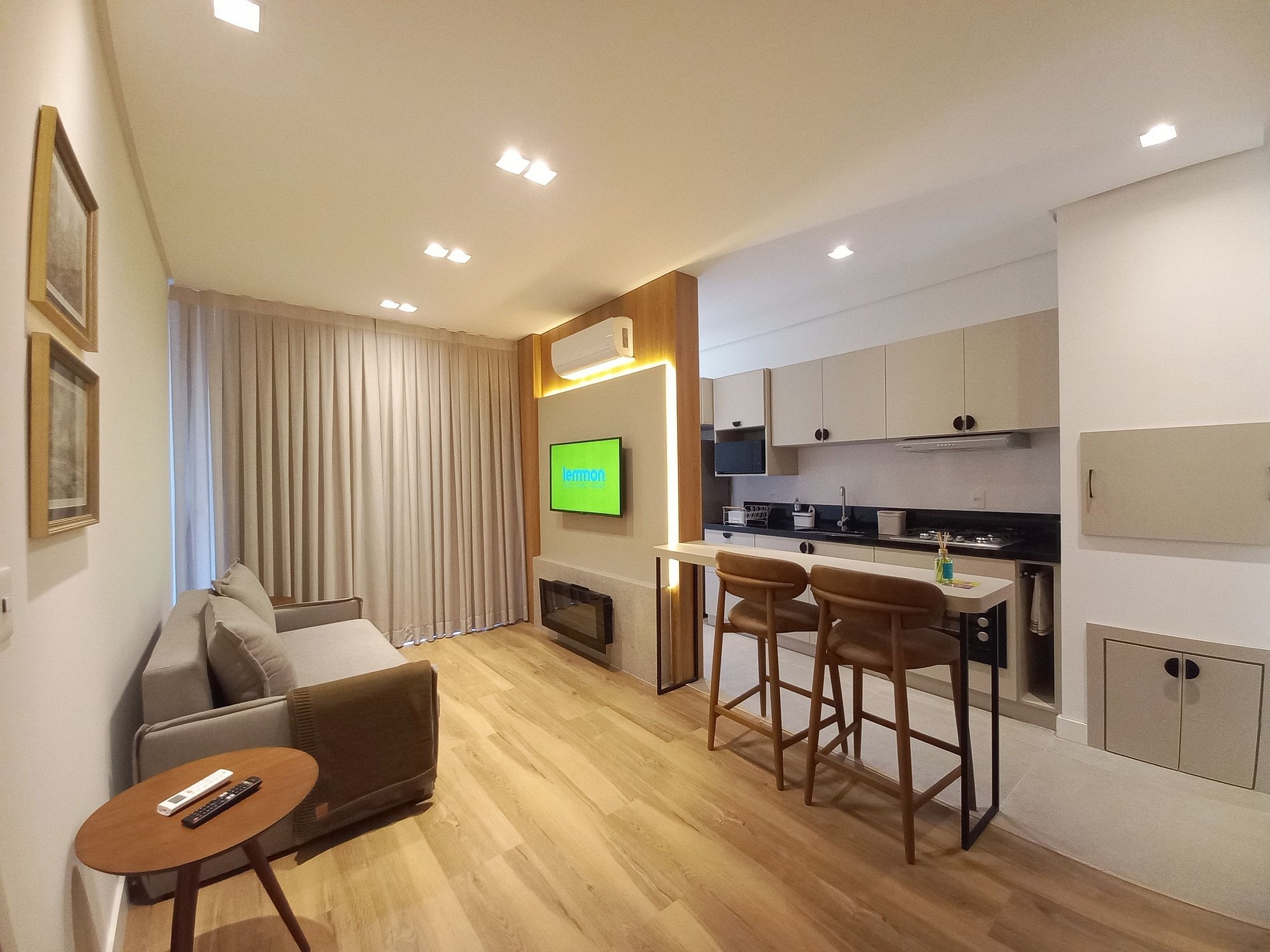 Apartamento de 01 dormitório novo e central, completo e perto de tudo. No coração de Gramado. Acomoda até 04 pessoas confortavelmente.