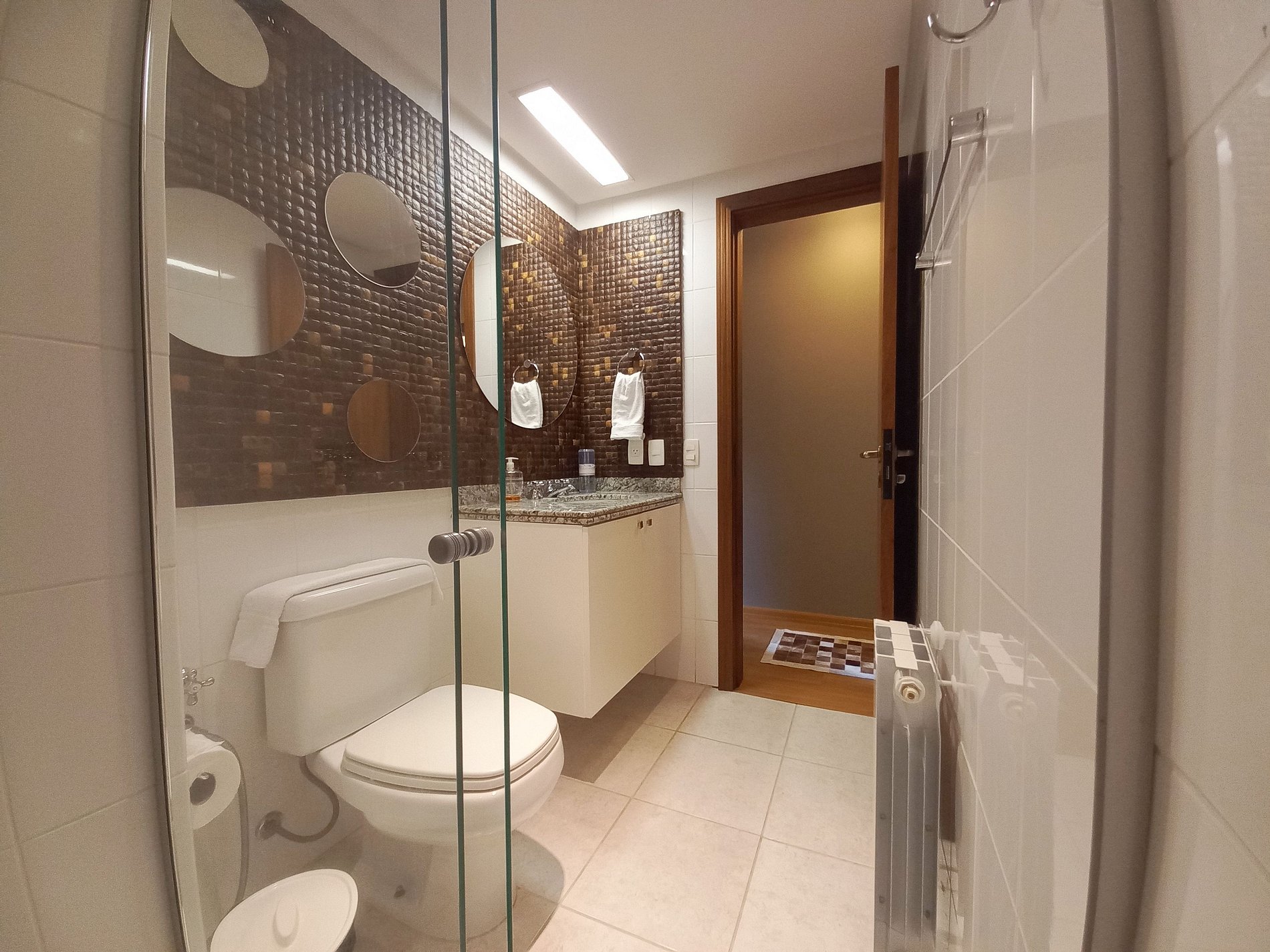 O hóspede deve retirar a chave do apartamento em um local próximo no centro de Gramado.
