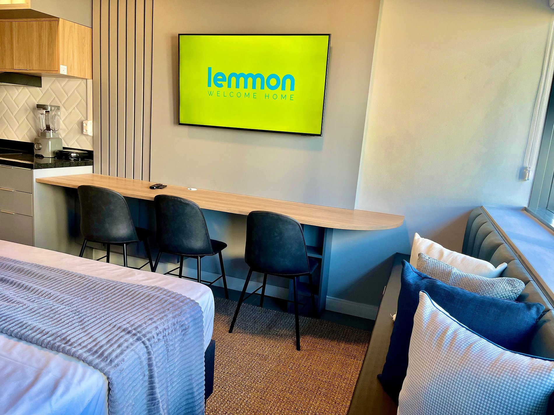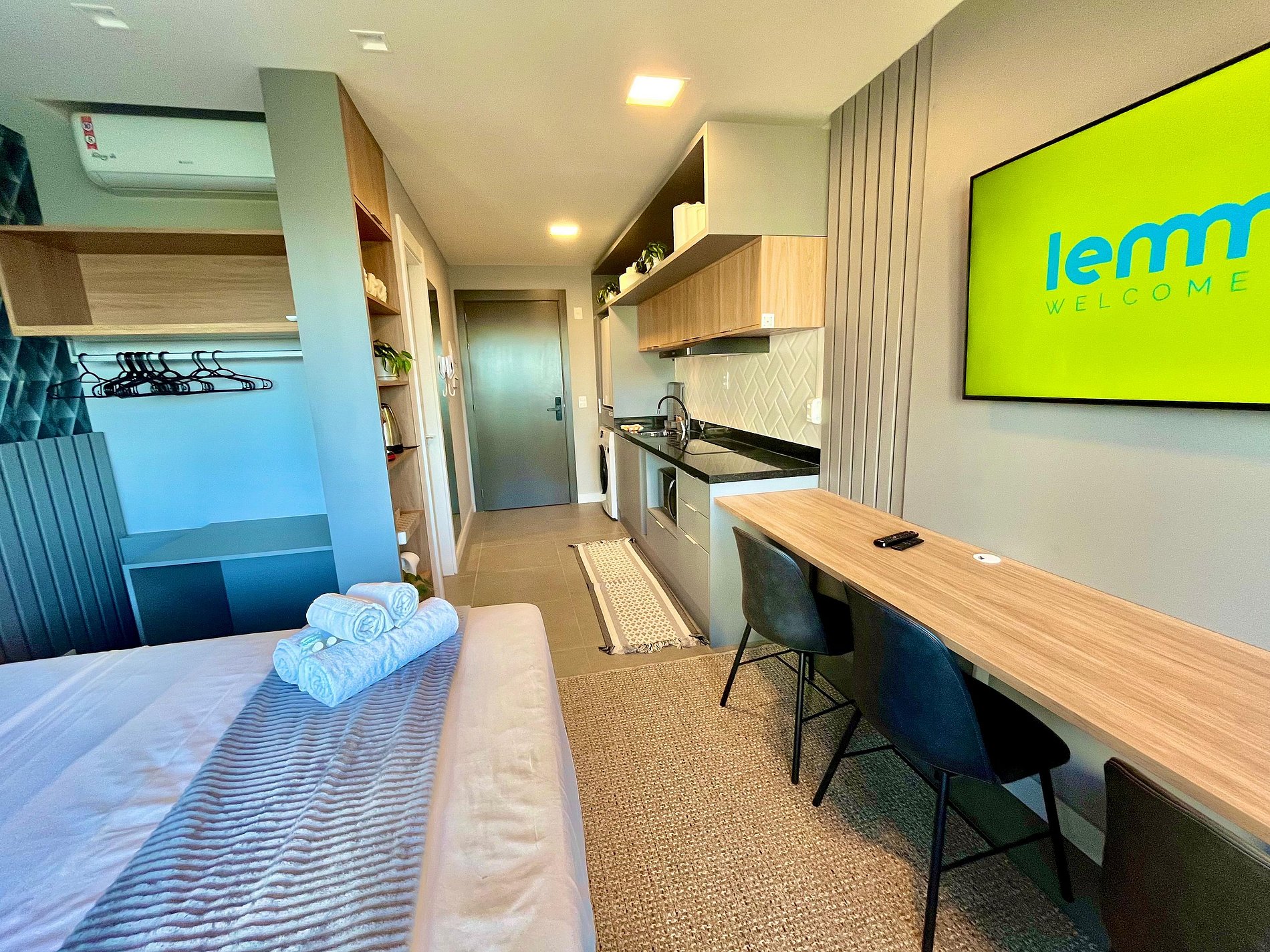 O apartamento é extremamente aconchegante, funcional e bem equipado, ideal para quem busca conforto e praticidade. Conta com uma cama casal confortável, uma cama extra de solteiro e um banheiro com um chuveiro excelente. O ambiente é climatizado com ar-condicionado tipo split, além de uma Smart TV e Wi-Fi de alta velocidade — perfeito para quem precisa trabalhar durante a estadia.