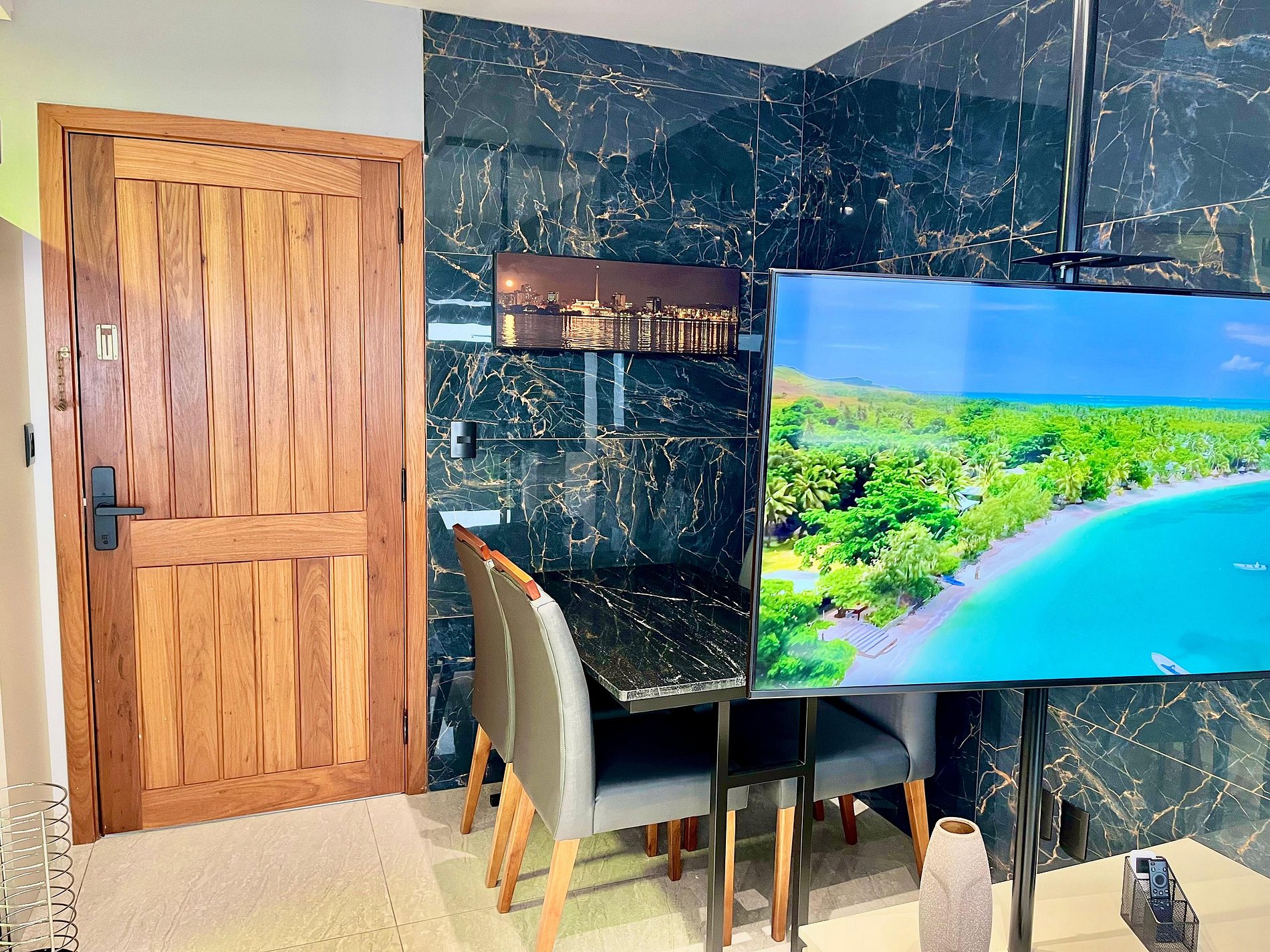 Após a confirmação da sua reserva você recebe senha da porta.